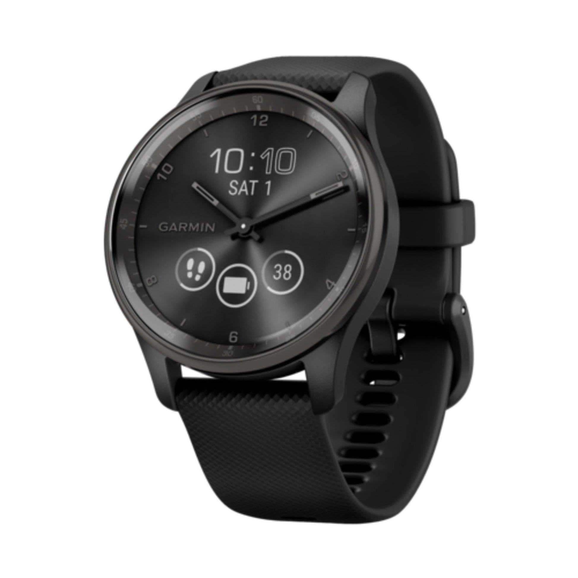 Get a perfect look around the clock. The vivomove Trend hybrid smartwatch gives you a classic analog style and essential smart features such as notifications on your compatible smartphone and Garmin Pay contactless payments. Real watch hands move to reveal a hidden touchscreen display. Live better with a full suite of health and wellness tools, including Body Battery energy monitoring, heart rate monitoring, sleep score and more.