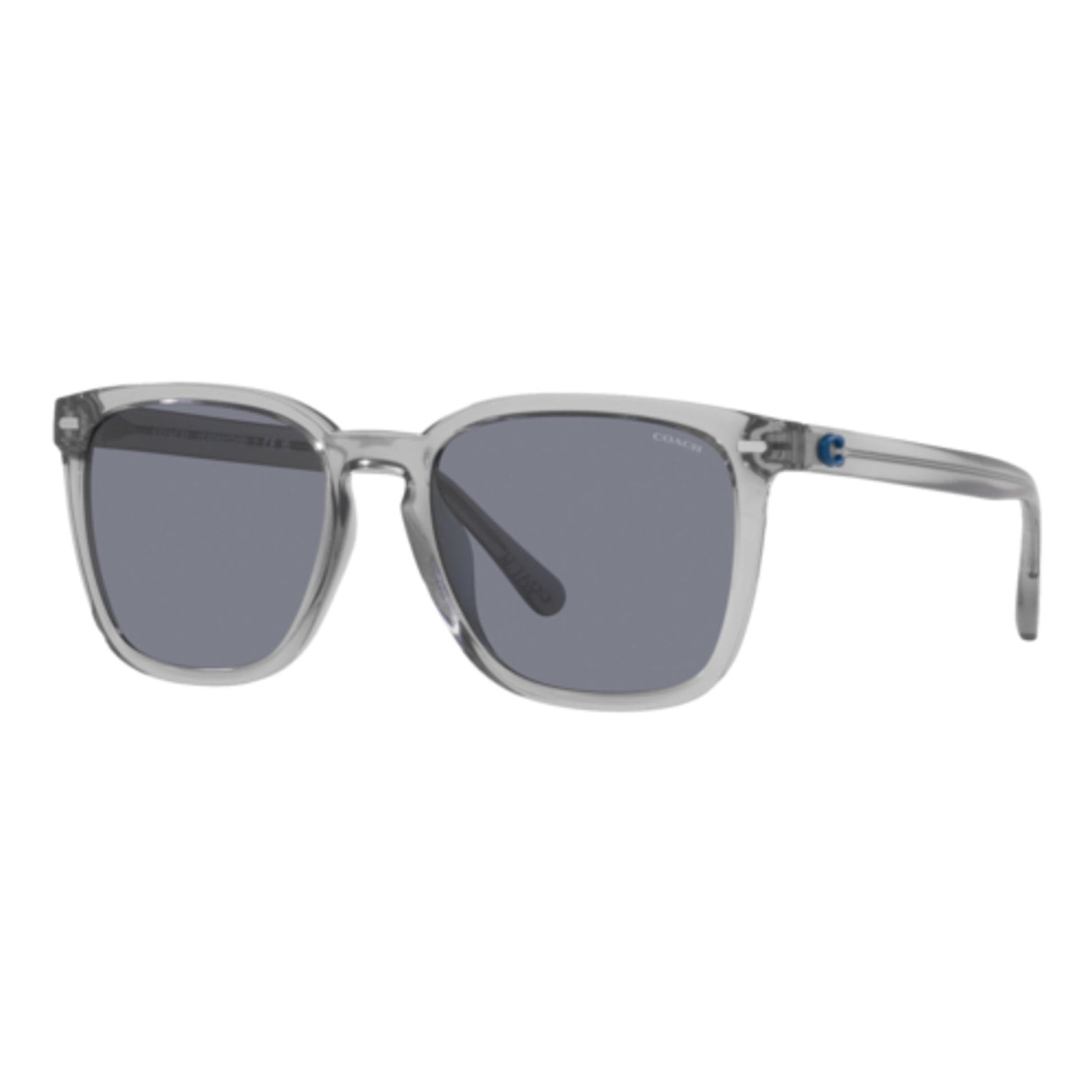 Our Signature adds style Coach heritage style to these classic square frames. Lightweight and durable, the lenses offer complete protection from UVA and UVB rays - making them perfect for every day. Eye size: 56; Frame: Transparent Grey; Lens: Dark Blue Solid; Lens Material: Standard Plastic