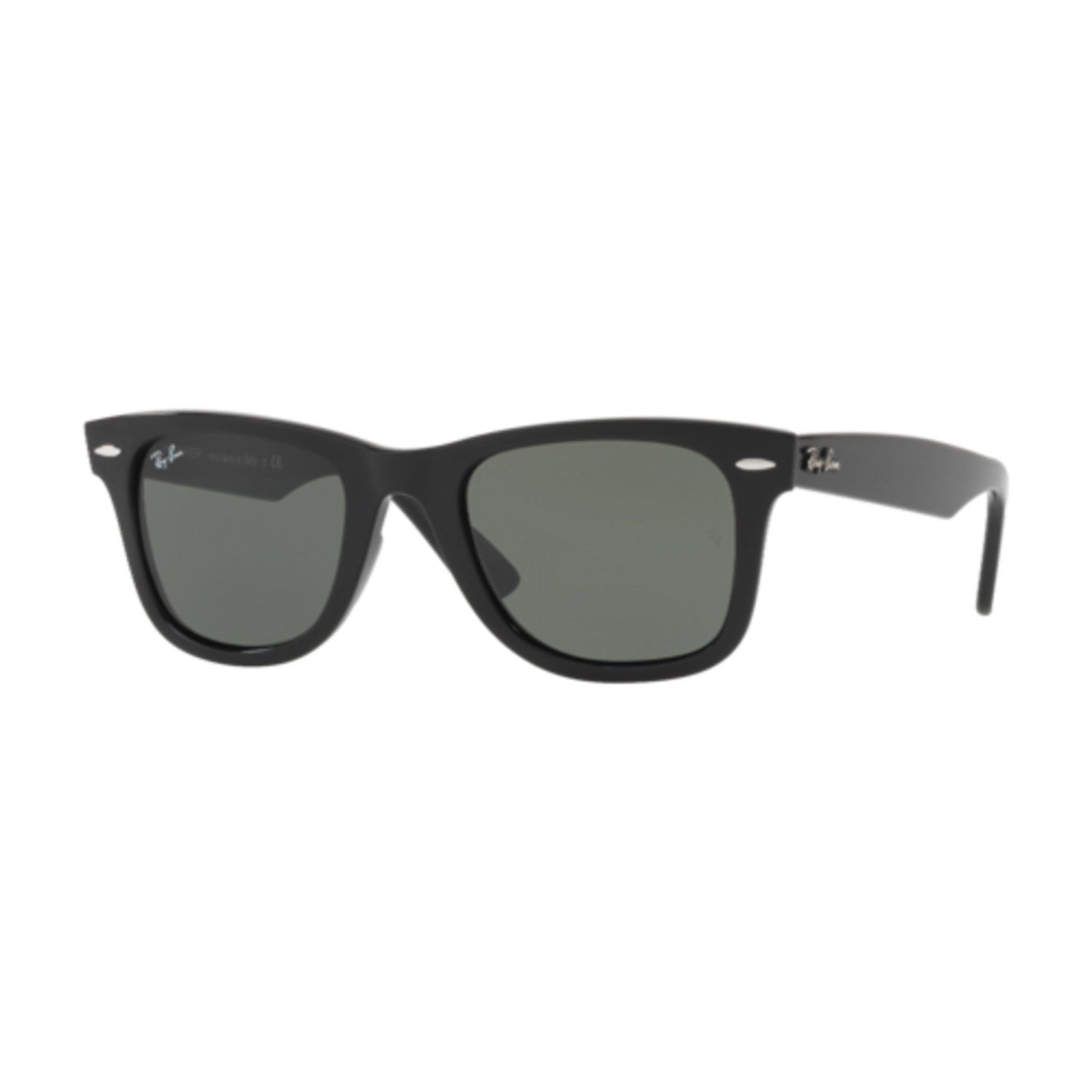 Instantly recognizable, totally irresistible - there's something special about the Wayfarer. The world's most famous shades are getting a distinctly laid-back upgrade and are designed to slide on fast and wear with total comfort. Just focus on what's important - feeling like a rockstar. Eye size: 50; Frame: Black; Lens: Green Classic G-15; Lens Material: Crystal Glass