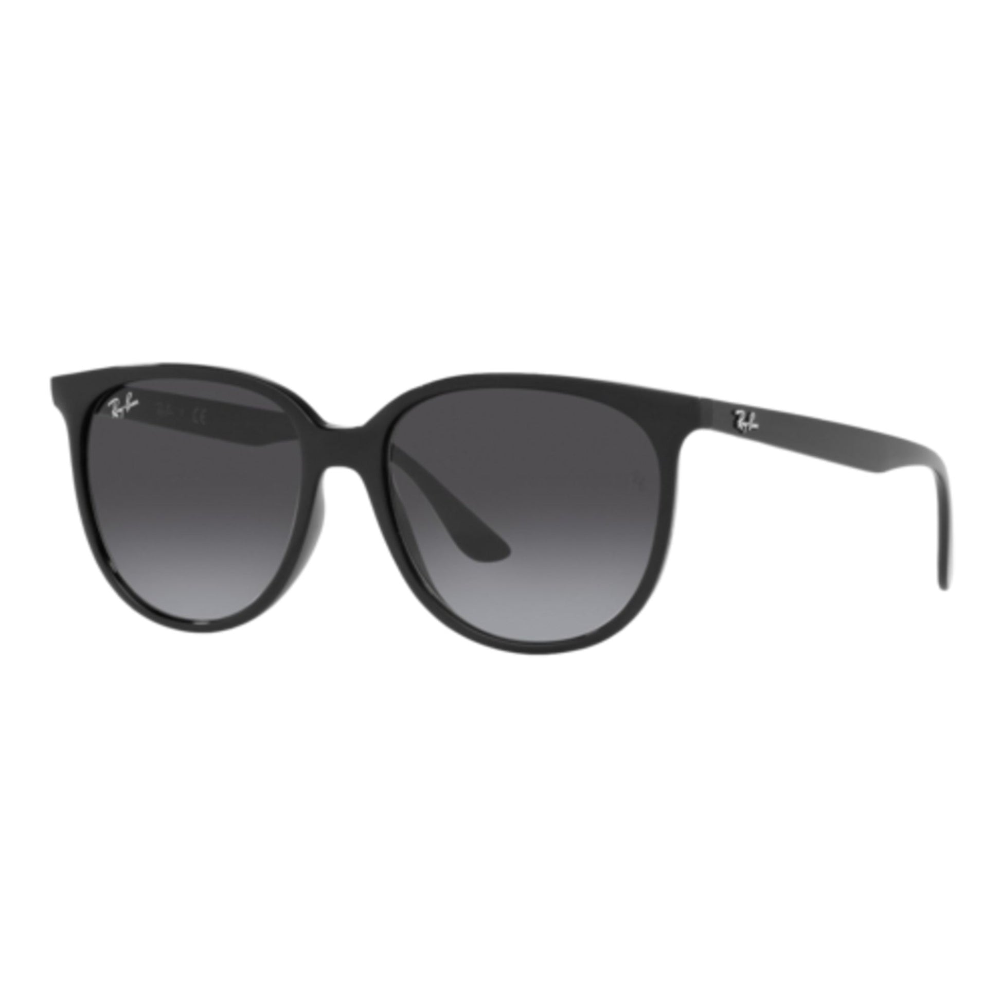 Lightweight, functional, and versatile are all qualities built into the RB4378. The modern styling of this large round frame makes it a great choice for an everyday pair of sunglasses. Eye size: 54; Frame: Black; Lens: Grey Gradient; Lens Material: Standard Plastic