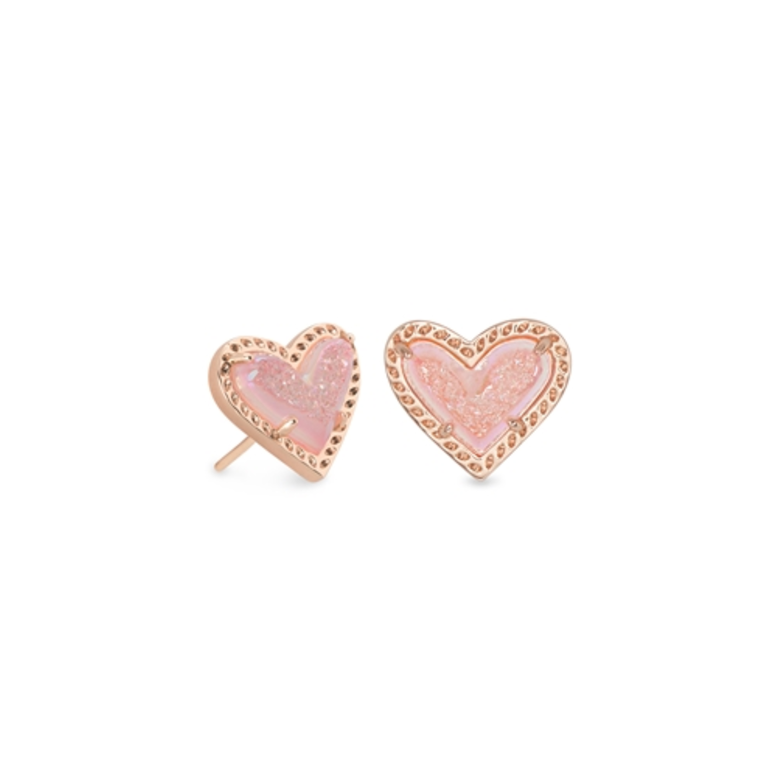 ARI HEART STUD EARRING, ROSE GOLD PINK DRUSY