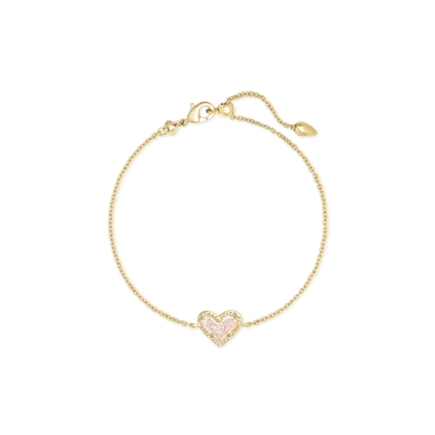 Wear your heart on your wrist with the Ari Heart Delicate Chain Bracelet in Gold Iridescent Drusy. This asymmetrical design shines solo, but functions just as well as part of your everyday stack. Metal: 14K Gold Plated Over Brass, Material: Iridescent Drusy, Closure: Adjustable lobster claw, Item Dimension: 0.56β L x 0.37β W station, 7.5β L circumference.
