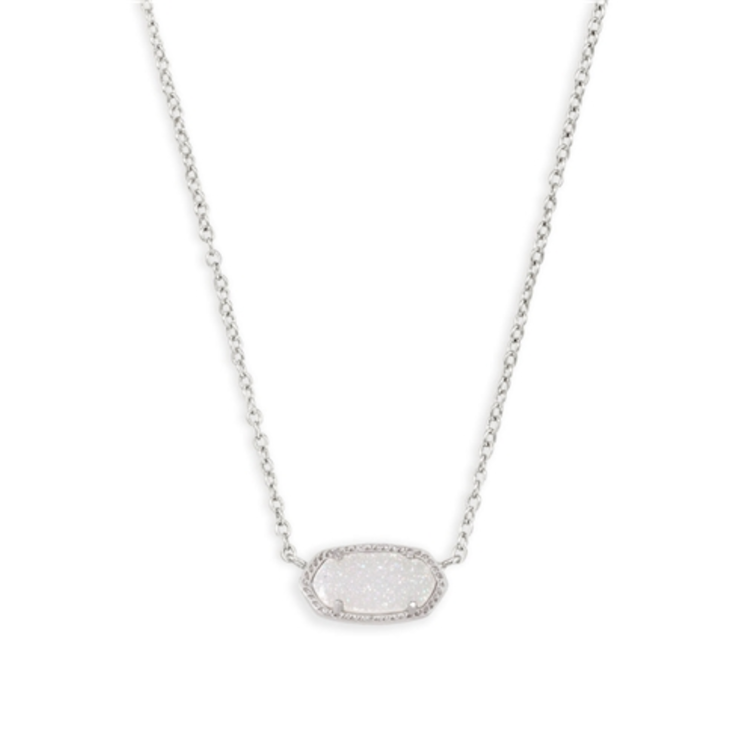 Our #1 bestseller. The Elisa Gold Pendant Necklace in Iridescent Drusy, one of the most iconic iterations of our signature shape. Dress it up or down, layer it or wear it solo - you can wear it every single day, in every single way. Metal Rhodium Plated Over Brass, Material: Iridescent Drusy, Closure: Lobster claw, Size:0.63"L x 0.38"W pendant, 15" chain, 2" extender".