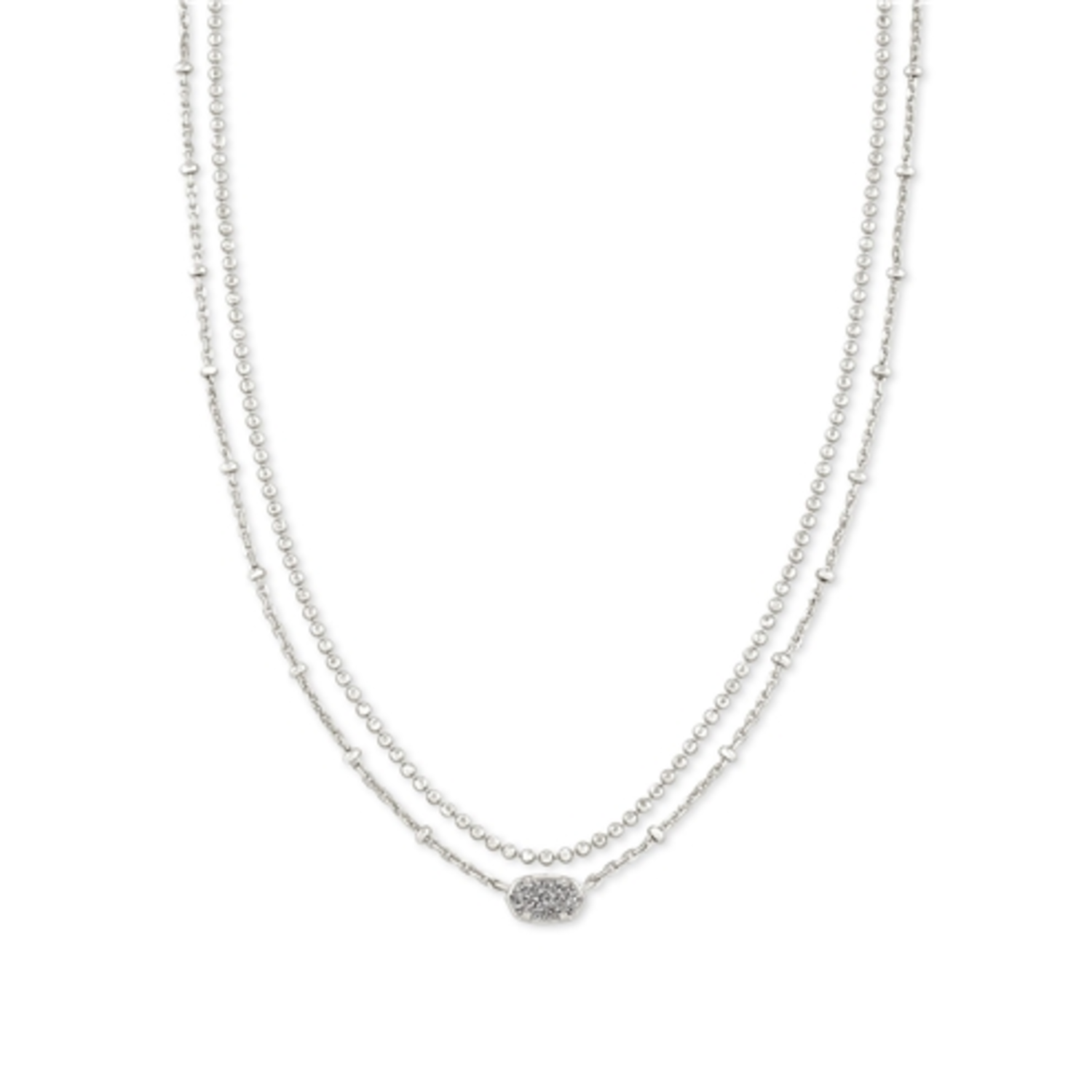 EMILIE MULTI STRAND NECKLACE, RHODIUM PLATINUM DRUSY
