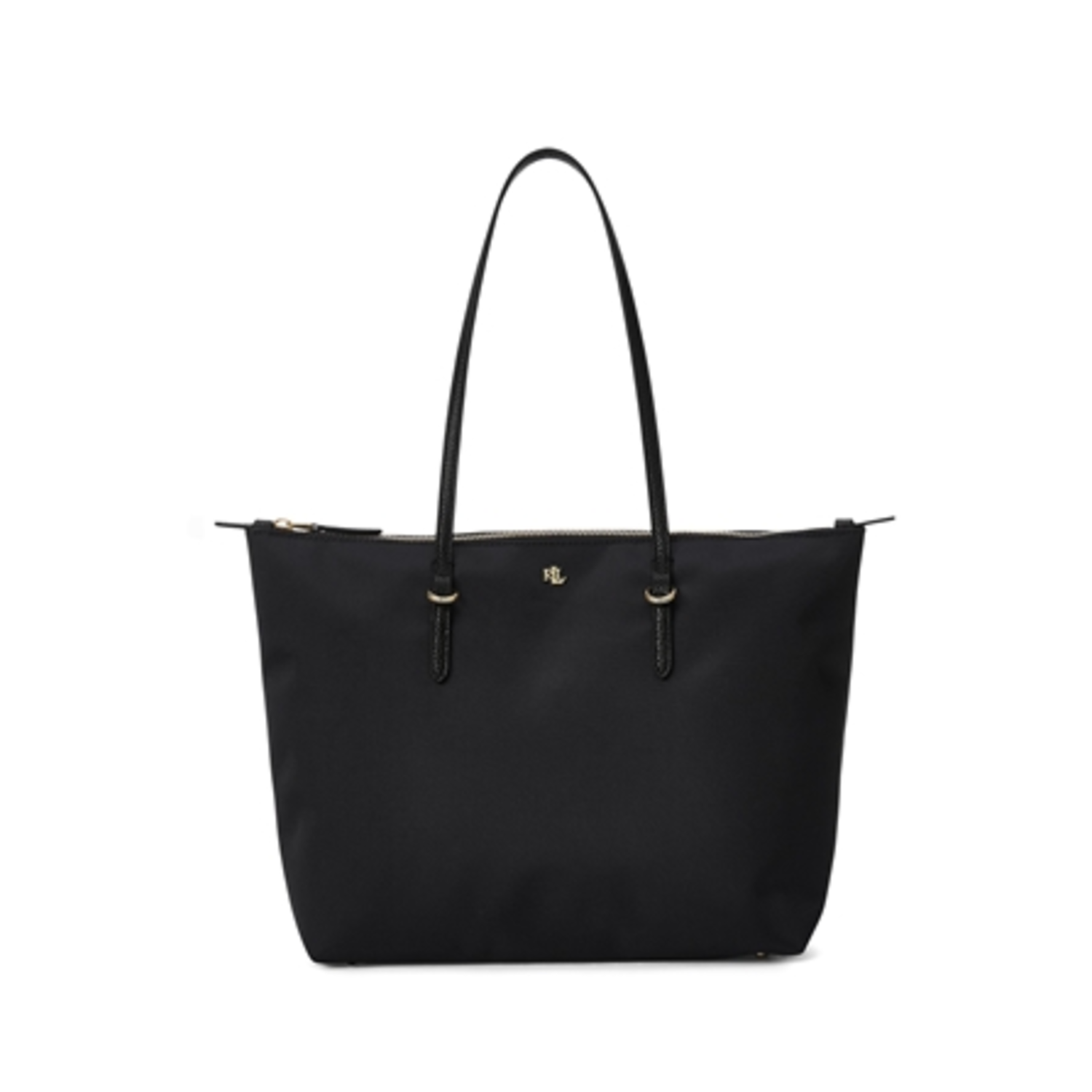 Crafted with durable nylon and designed with sumptuous faux-leather straps, the medium Keaton tote features a spacious silhouette, perfect for carrying the days essentials. A versatile must-have, it's finished with an “LRL” metal logo at the front for signature style. Strap Length: 9.50. Dimensions 15" L x 5.5" W x 10.5" H. Weighs .64 lbs.