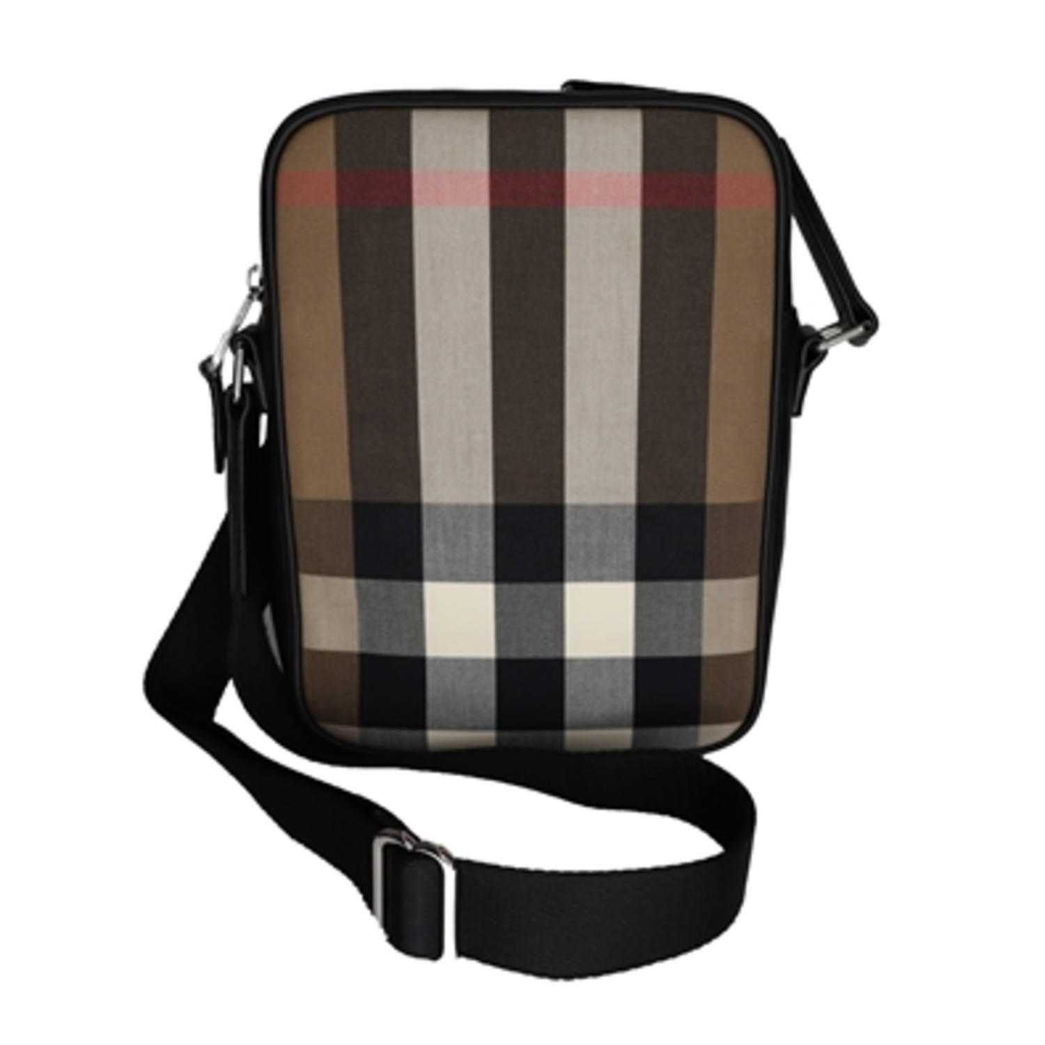 This signature check camera bag features top zipper closure and a canvas carrying strap. Bag interior contains a convenient card holder pocket for your valuables. This bag is the perfect way to look stylish carrying your camera or phone from day into night. Dimensions 7" L x 2.75" W x 9.5" H.