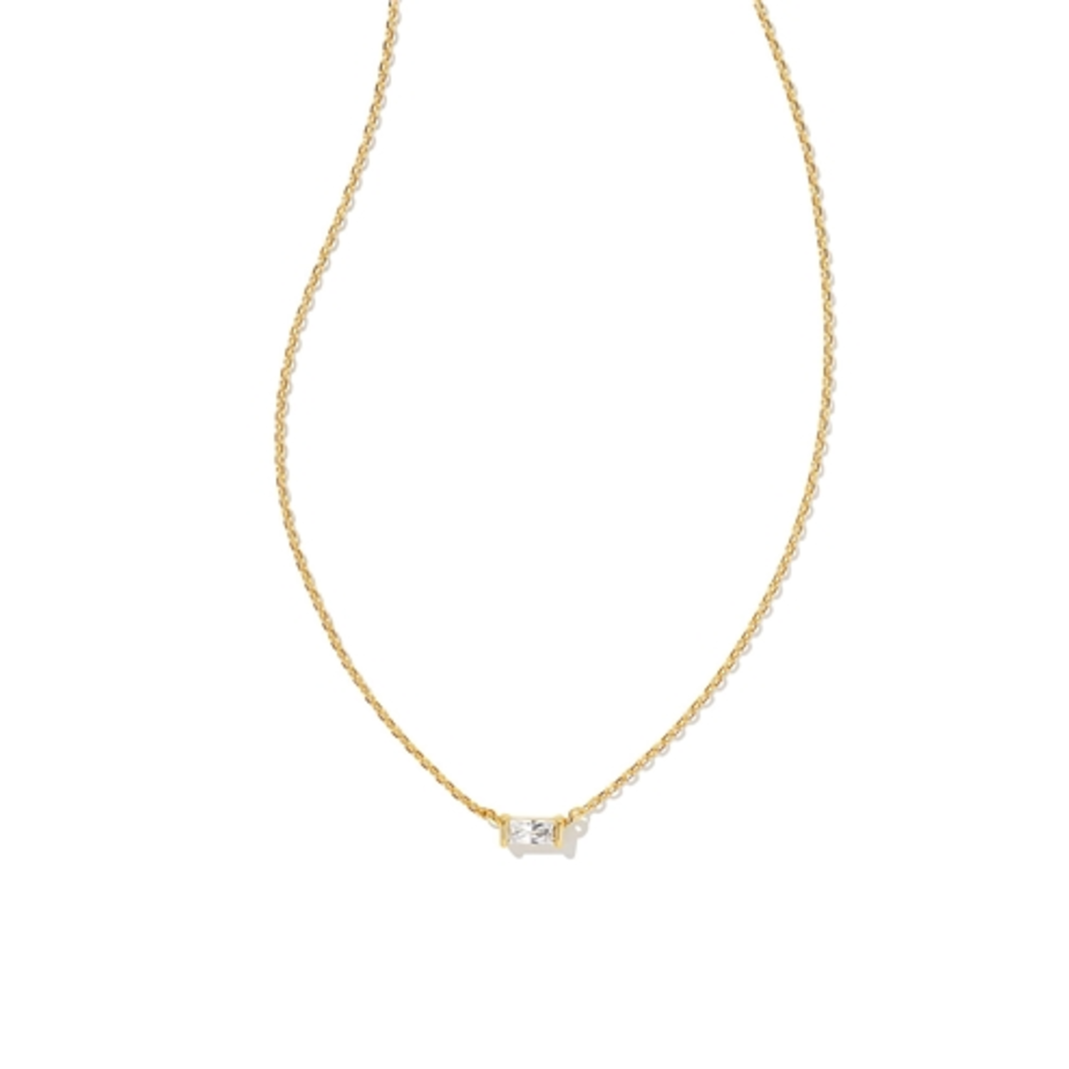 Subtle and refined, our Juliette Pendant Necklace in White Crystal features a singular baguette stone for timeless style. From date nights to dinner parties, this sophisticated pendant is sure to shine bright at all your celebrations. 19' CHAIN, 0.39'L X 0.15'W PENDANT