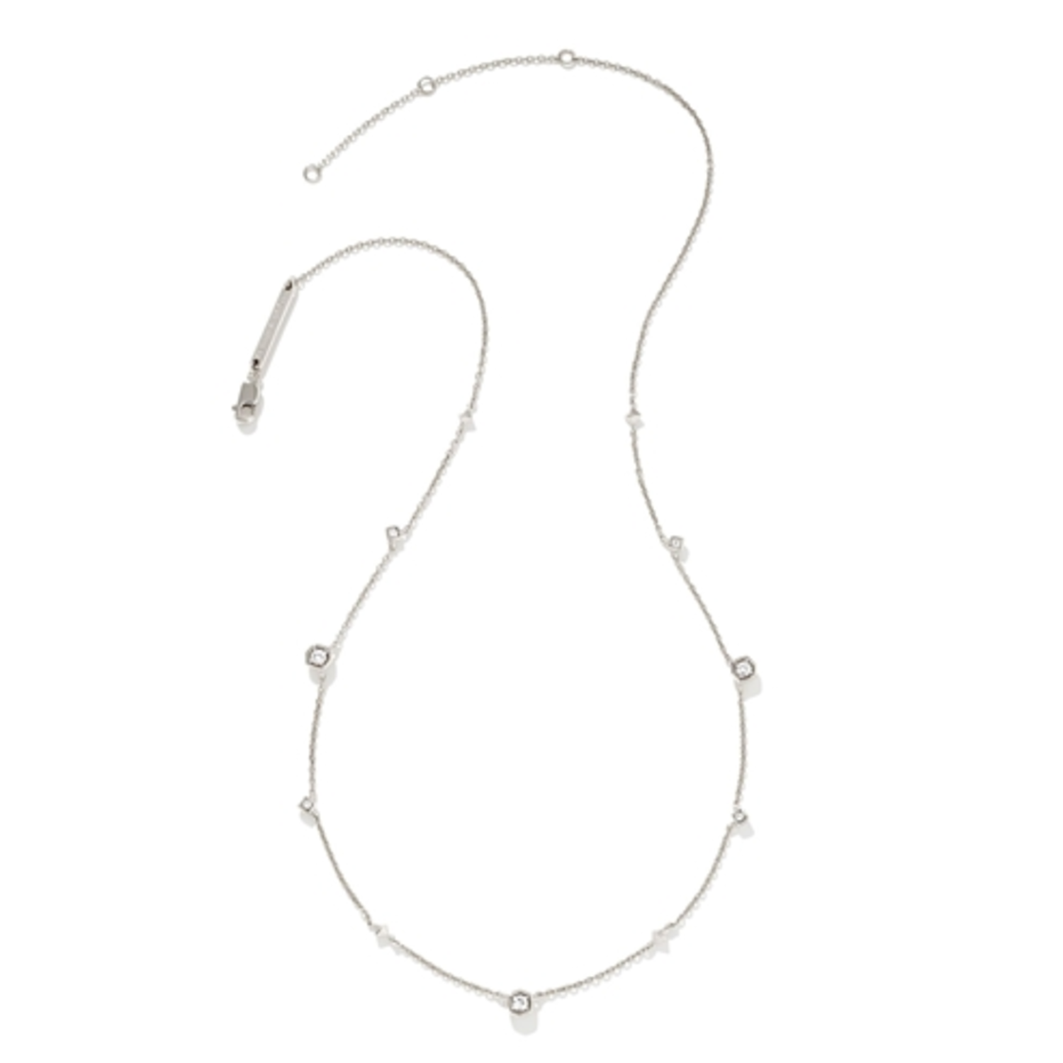 A delicate necklace adorned with moments of subtle sparkle. The Davie Sterling Silver Trio Strand Necklace in White Sapphire is an elevated layering piece designed to shine for years to come, featuring a minimalist design that's perfect for everyday wear. 18"Chain With Extender At 16", 17" And 18". Comp1 0.16"Lx0.23"W, Comp2 0.11"Lx0.16"W, Comp3 0.22"Lx0.11"W