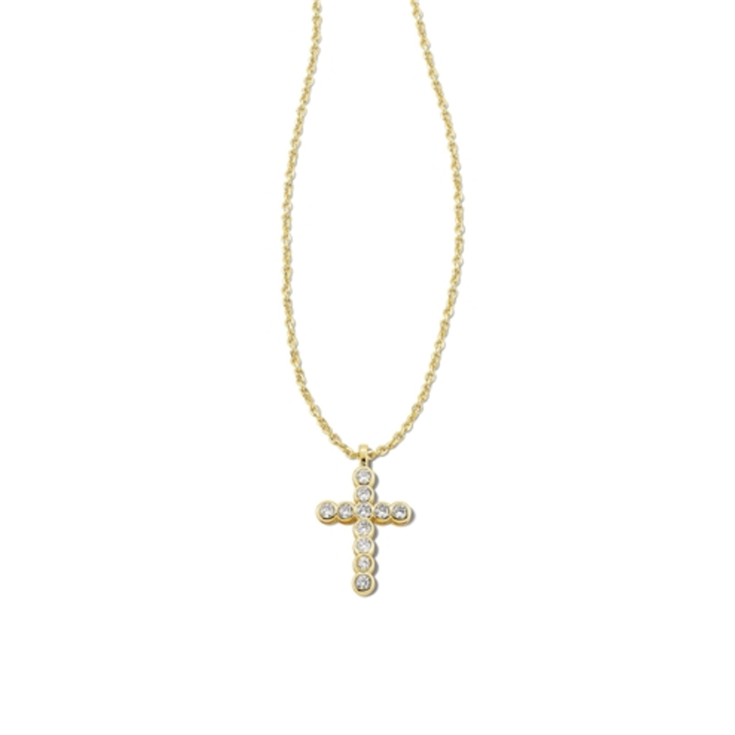 CROSS CRYSTAL PENDANT NECKLACE, GOLD WHITE CRYSTAL
