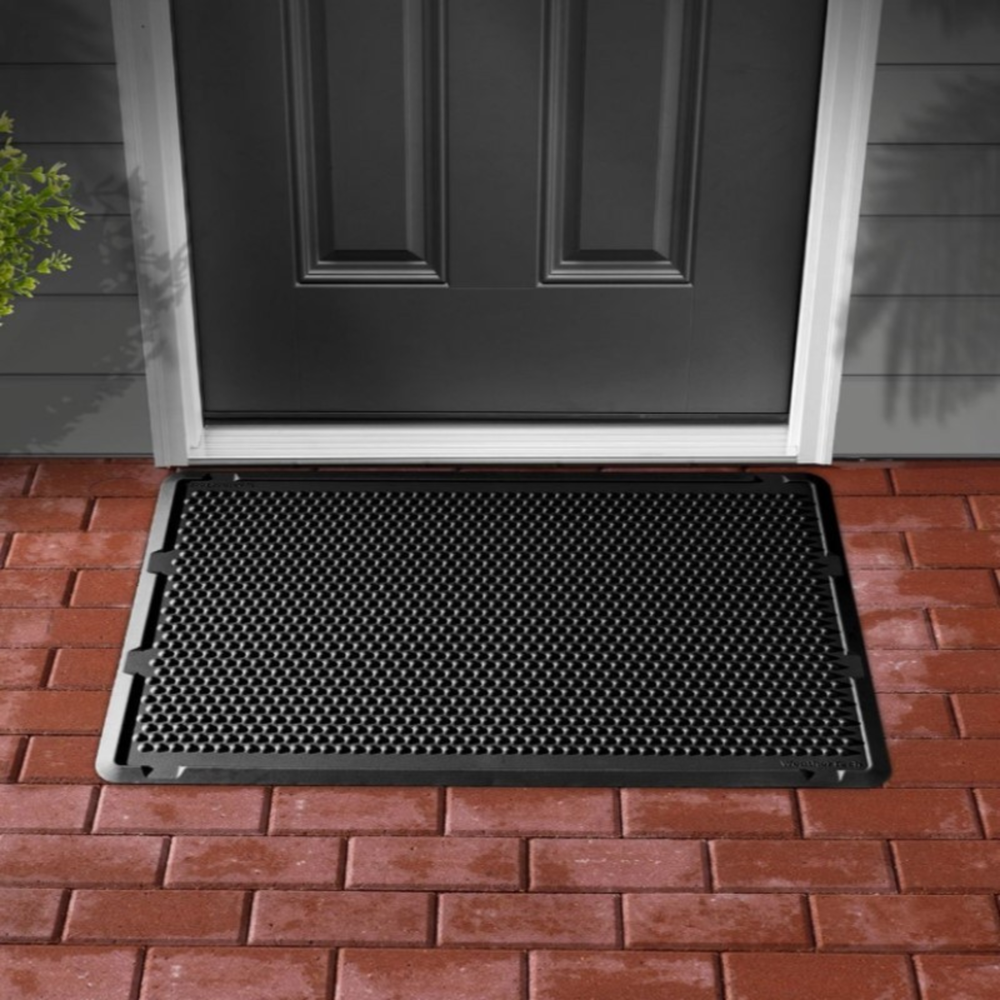 Made in the USA from 100% recyclable material, the WeatherTech OutdoorMat features a specially designed scraper edge combined with semi-rigid cones to remove snow, ice, grass, sand, mud and leaves from shoes. Outer vents surround the edges to allow water to drain and the mat to fully dry. Its sturdy design means OutdoorMat stays in place, even while wiping your feet. Dimensions 24" x 39"Made in the USA