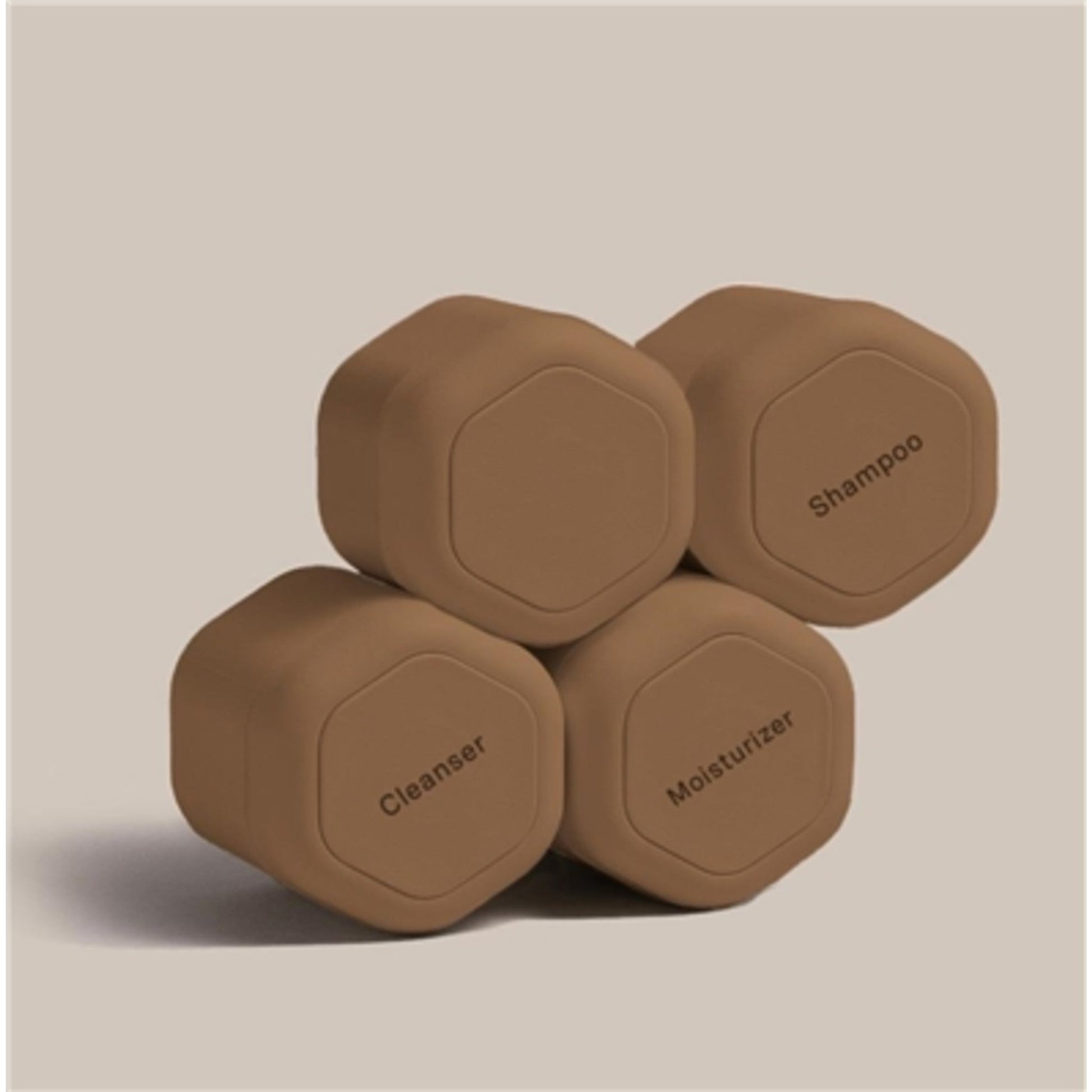 The perfect gift for anyone that likes to travel for a few days to a week at a time and wants to bring the essentials along. This set features four Medium Capsules (1.32 fl oz each) with a Shampoo, Moisturizer, Cleanser, and blank label so you can maintain your routine at a home away from home.(Color :Mocha). TSA Approved.