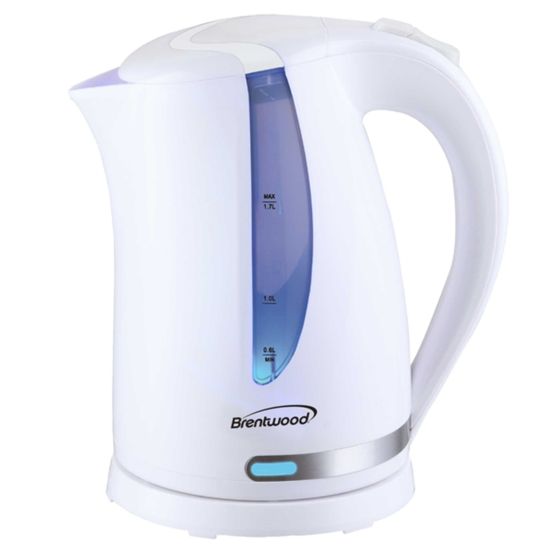 Brentwood KT-1616W 1,100-Watt Cordless Electric Kettle with Concealed Stainless Steel Heating Element, 360deg Base, Auto Shutoff, and Boil-Dry Protection (1.7 L; White)