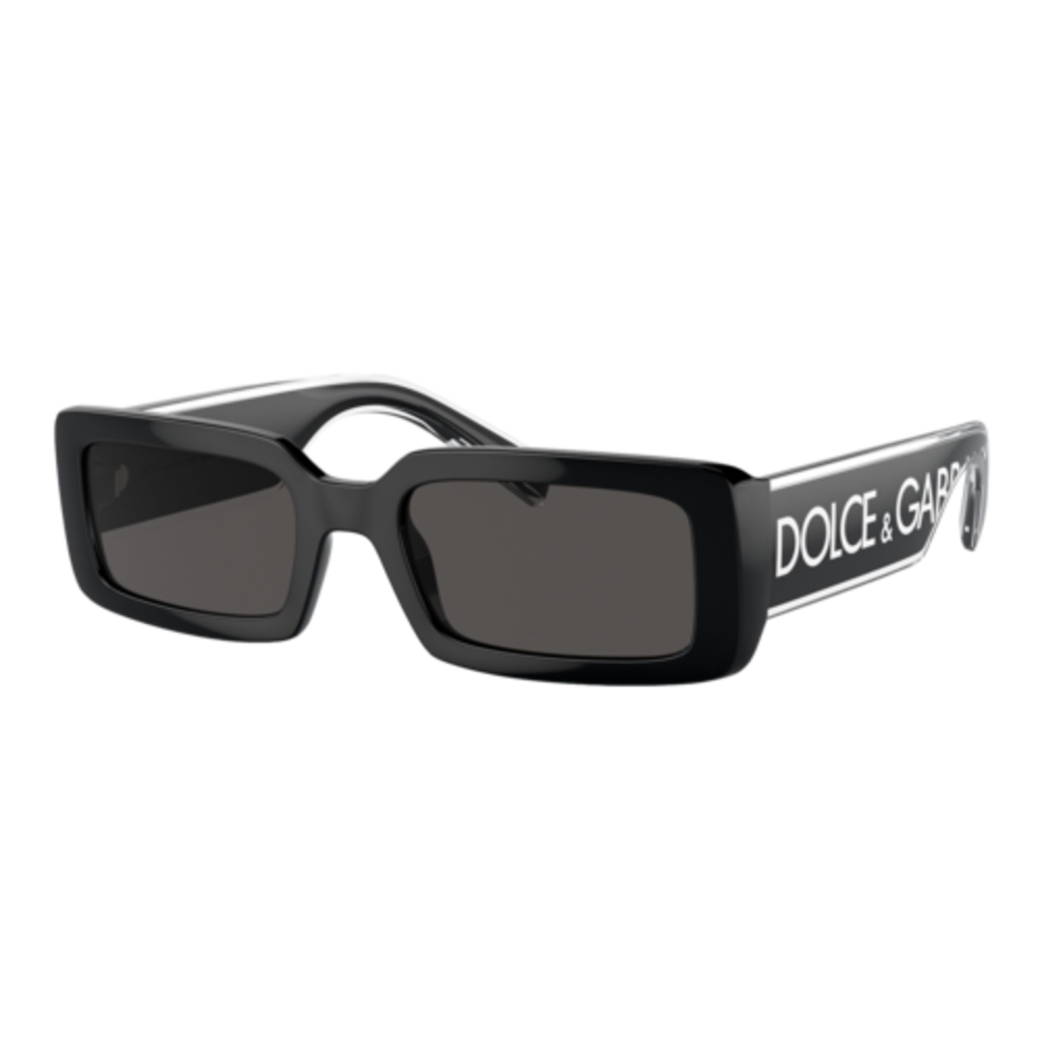 Elevating the style of the rectangle frame to new heights, these Dolce & Gabbana sunglasses boast a sophisticated allure. The solid dark grey lenses are paired with a black frame crafted from premium materials for an unmistakable statement of elegance and timeless design. Elevated by the iconic DG lettering on temple tips in shiny finish, these sunglasses embody the essence of luxury. Eye Size: 53; Frame: Black; Lens: Dark Grey Solid; Lens Material: Standard Plastic