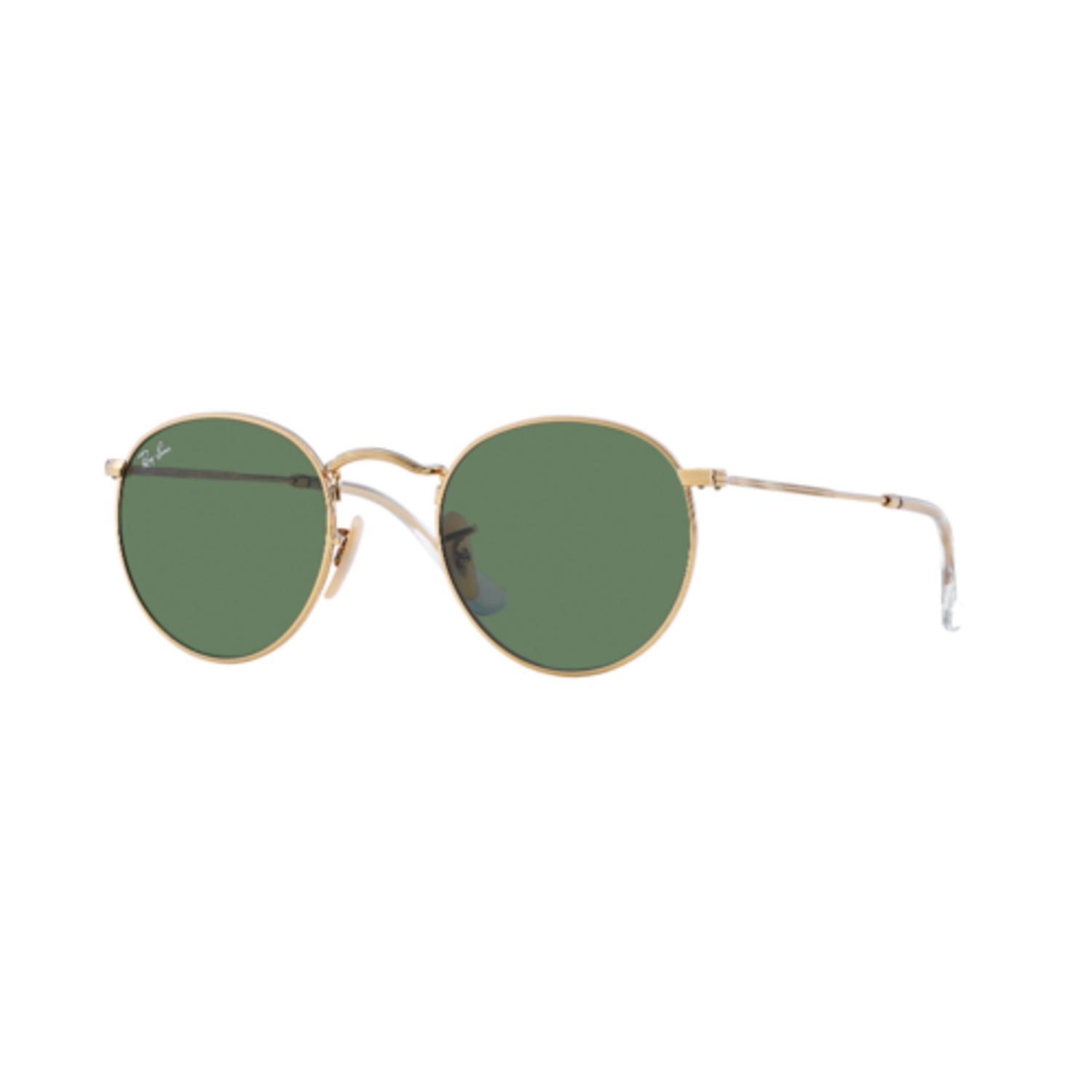 Go back in time with Ray-Ban Round Metal. These timeless round sunglasses feature a retro look first worn by legendary musicians and inspired by the counter-culture of the 1960's. Round Metal RB3447 sunglasses are not only iconic, but add boldness to your look with dark lenses and a slim frame. The Round Metal's lightweight frame, curved brow bar and adjustable nose pads give these sunglasses ultimate comfort alongside pristine fashion. Eye size: 50; Frame: Gold; Lens: Green Classic G-15; Lens Material: Crystal Glass