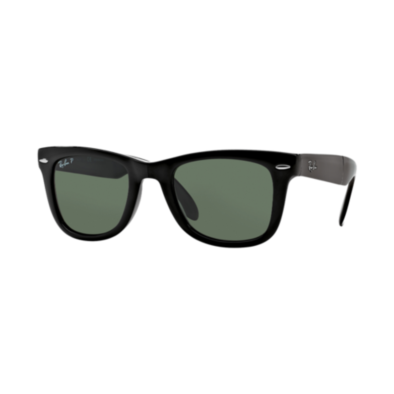 Ray-Ban Wayfarer Folding Classic RB4105 sunglasses provide a practical, portable and always in-style look. Modeled from the Original Wayfarer Classic, the iconic Wayfarer has been constructed into a compact, folding style letting you be practicably fabulous. Wayfarer Folding Classic can be easily folded and tucked away for ultimate portability, while still maintaining a highly durable frame. Eye size: 50; Frame: Black; Lens: Polarized Green Classic G-15; Lens Material: Crystal Polarized Glass