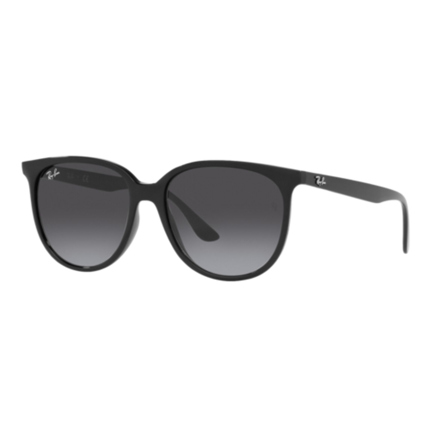 Lightweight, functional, and versatile are all qualities built into the RB4378. The modern styling of this large round frame makes it a great choice for an everyday pair of sunglasses. Eye size: 54; Frame: Black; Lens: Grey Gradient; Lens Material: Standard Plastic