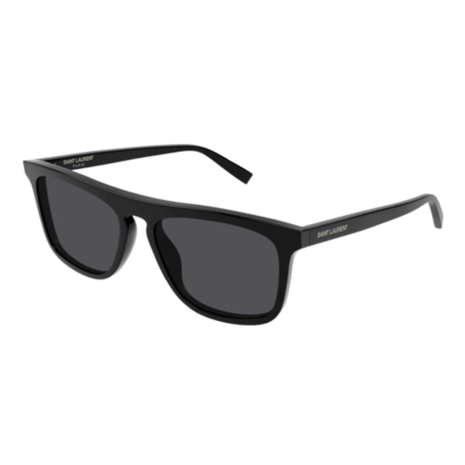 A new masculine flat top frame in the essential line. Full acetate construction with the Saint Laurent logo lasered with color on both temples. Eye size: 56; Frame: Black; Lens: Black; Lens Material: Standard Plastic