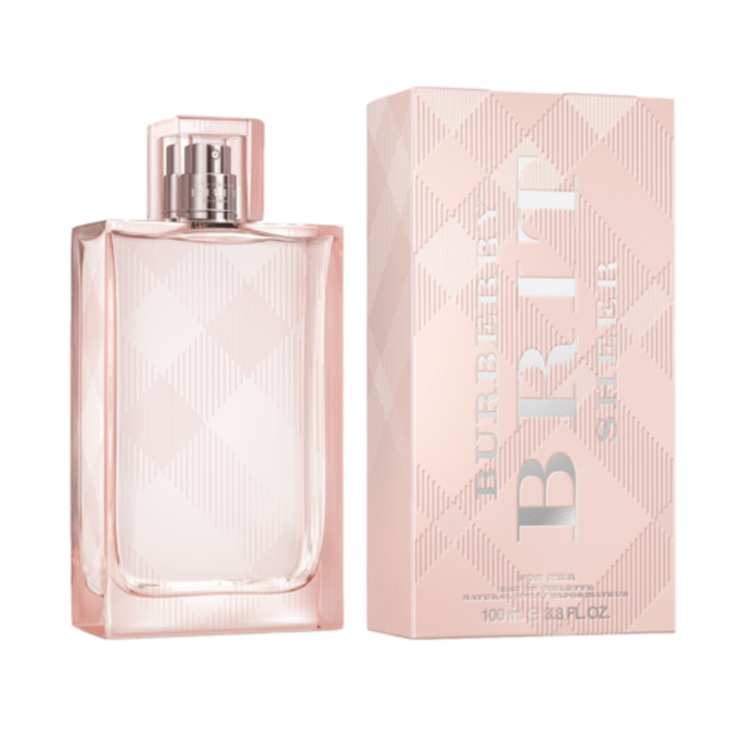 Burberry Brit Sheer Eau de Toilette is a lively and romantic fragrance. The scent features sparkling top notes of bright yuzu and mandarin, uplifted by pineapple leaves, luscious lychee, and grapes. The body reveals a floral mix of peony, peach blossom, sweet pea with just a hint of nashi. The fragrance dries to a luminous veil of white musk and creamy amyris wood. It is presented in a check glass bottle.