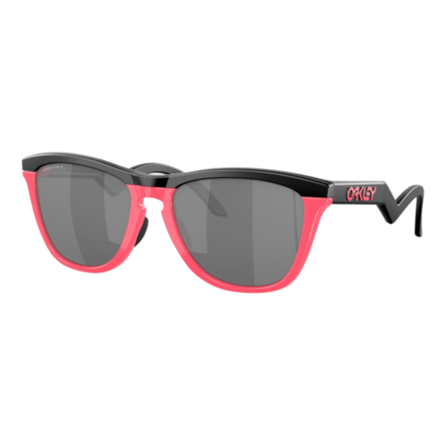 They're iconic and the best of the 80's reborn. Get the classic shape of Frogskins paired with the trigger stem design of Oakley's iconic Razor Blades. The frame is a hybrid of epic proportions made with plant-based BiO-Matter material and unique color breaks that stand out. Unobtainium nosepads make sure your look stays put and the Oakley Factory Pilot logo says you know your heritage. Eye Size: 55; Frame: Matte Black/Neon Pink; Lens: Prizm Black; Lens Material: Standard Plastic