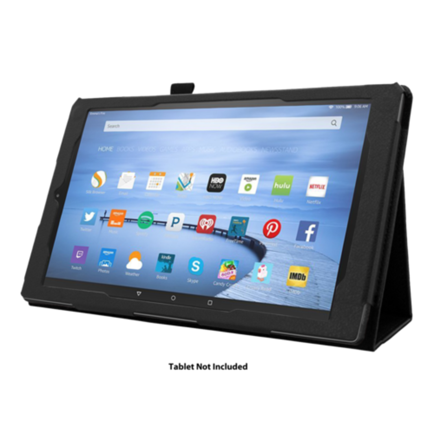 Protect your valuable smart device in style with this chic, synthetic leather Fire HD 10 easel case. The perfect way to preserve your tablet, and have a comfortable work station wherever you go, this case features a stylus loop to help keep track of your tools and a sleeper magnet for better battery longevity. It folds into an easel shape to provide a comfortable work station. Compatible with 11th generation Fire HD 10 Tablets. Color: Black