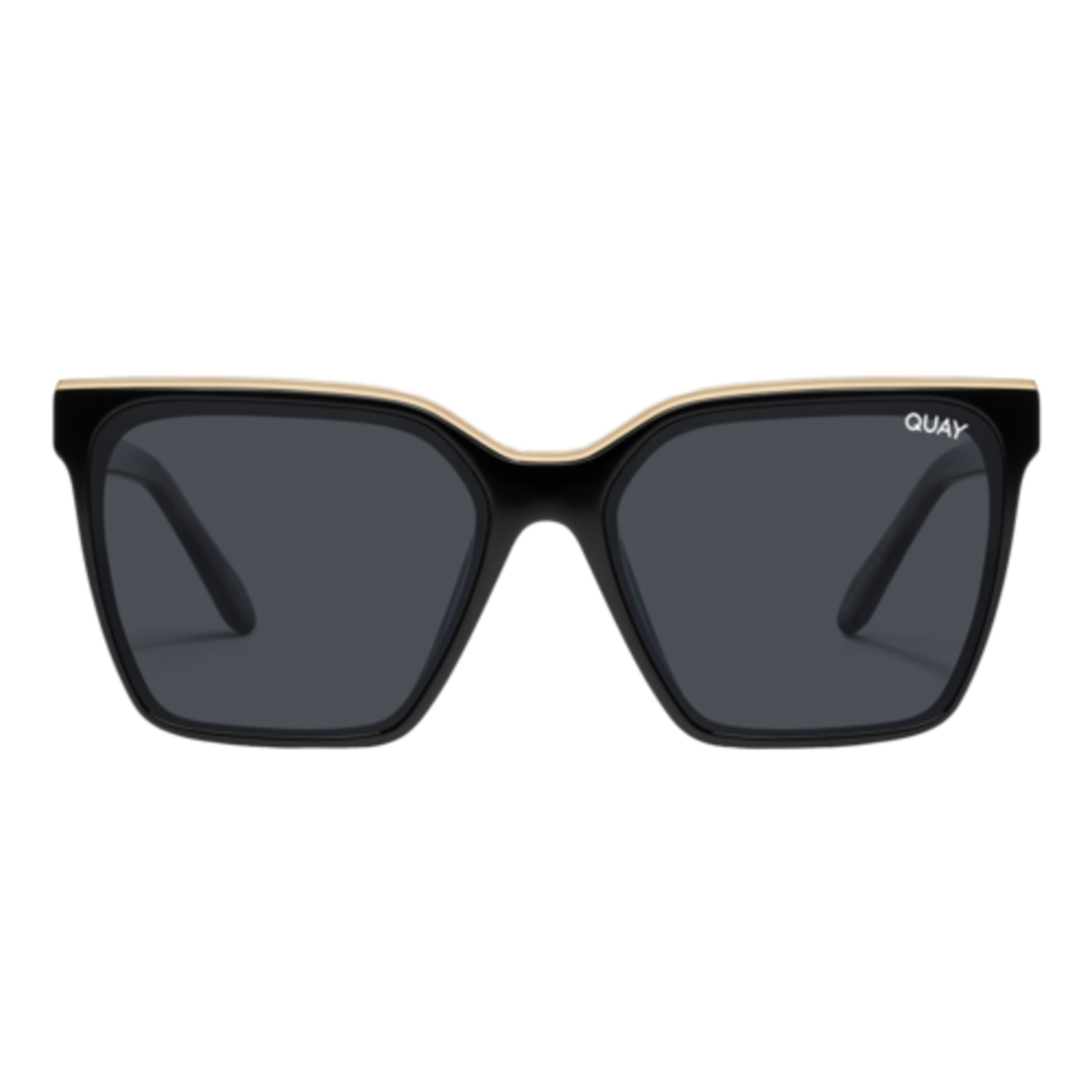 LEVEL UP in our most popular square frame that offers a dramatic, chic look for any occasion. This ultra-flattering design features a stylish metal brow bar for instant glamour and angled outer edges to enhance the natural contouring of your cheekbones. Black Gold frame with Smoke Polarized lens