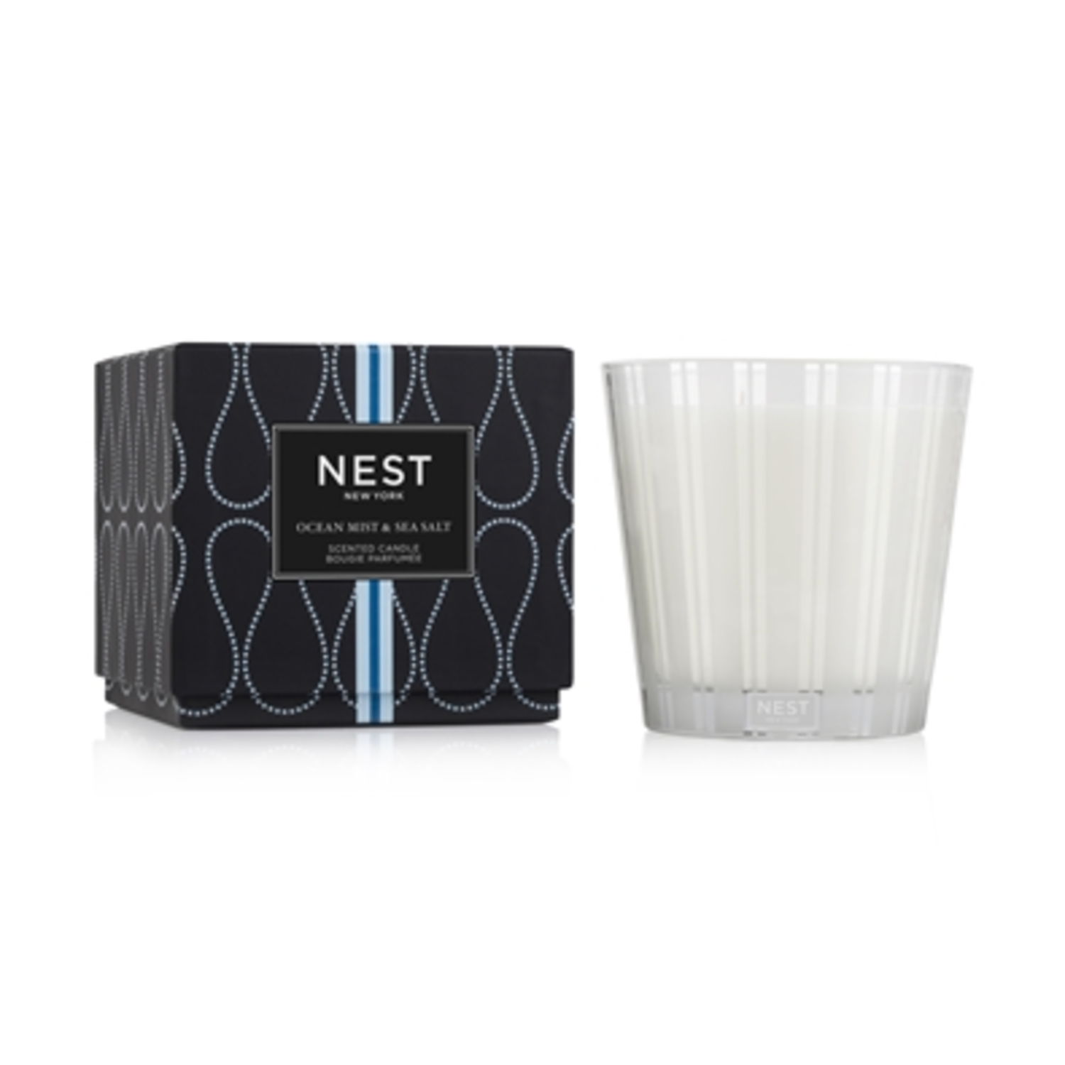 Escape to the seaside with this 3-Wick Candle featuring the refreshing essence of a gentle ocean mist combined with hints of sea salt, white tea, and coconut. Housed in a glass vessel etched with elegant, frosted stripes to complement any decor. This exquisitely fragranced candle is meticulously crafted with a proprietary premium wax formulated so the candle burns cleanly and evenly and infuses a room with exceptional scent. Cruelty-Free & Vegan. Up to 100 hours burn time. Clean Burn with 100% Lead-Free and Cotton Wicks. Free from Formaldehyde, Parabens, Phthalates. Reusable Glass Holder. Made in USA. 5" D x 4.75" H. 21.2 oz.