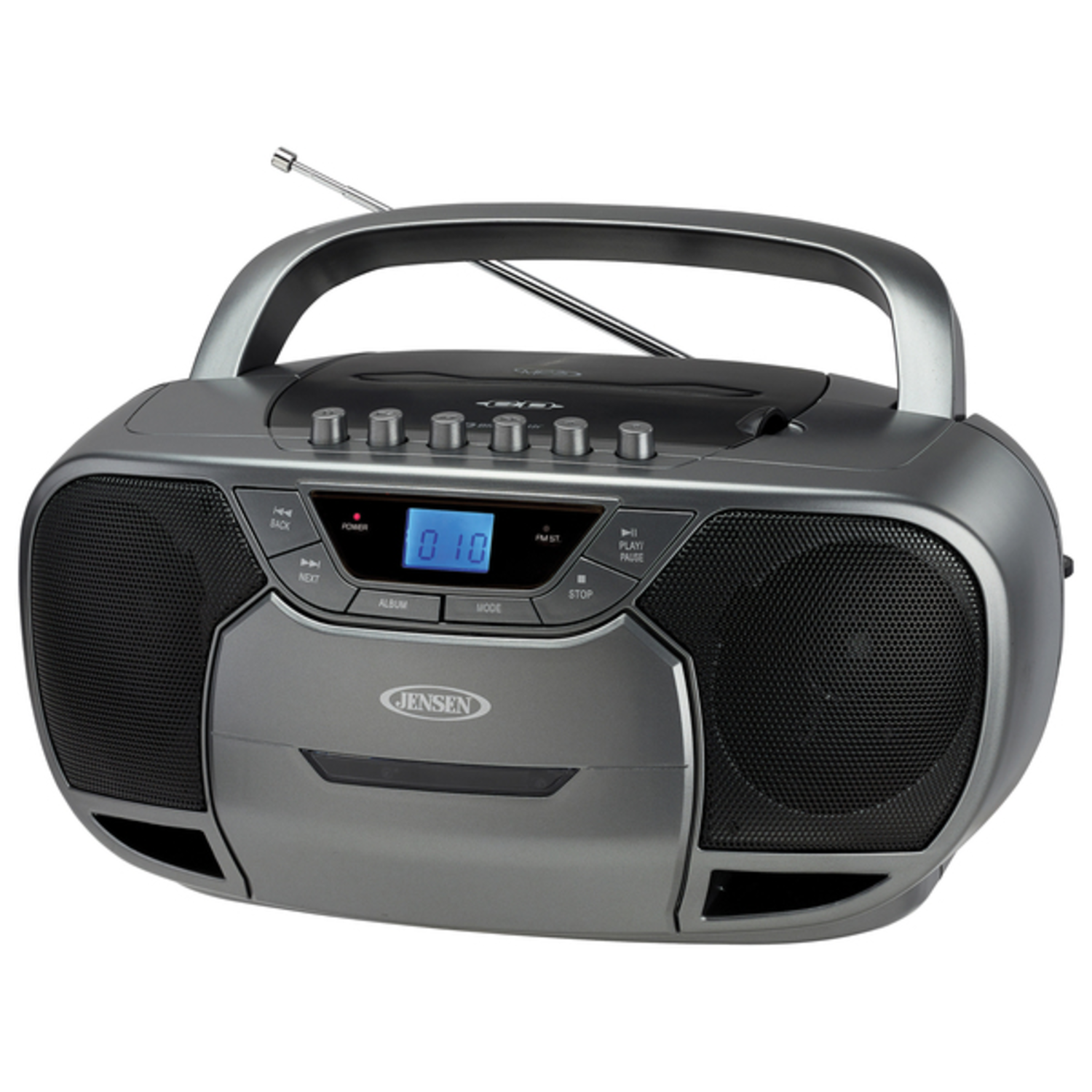 JENSEN CD-590-GR CD-590 1-Watt Portable Stereo CD and Cassette Player/Recorder with AM/FM Radio and Bluetooth (Gray)