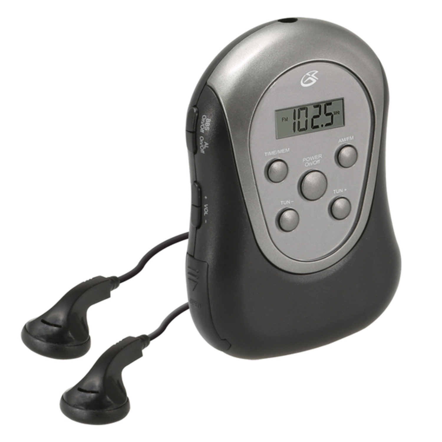 GPX R300S Portable AM/FM Armband Radio with Earbud Heaphones, Black and Silver, R300S