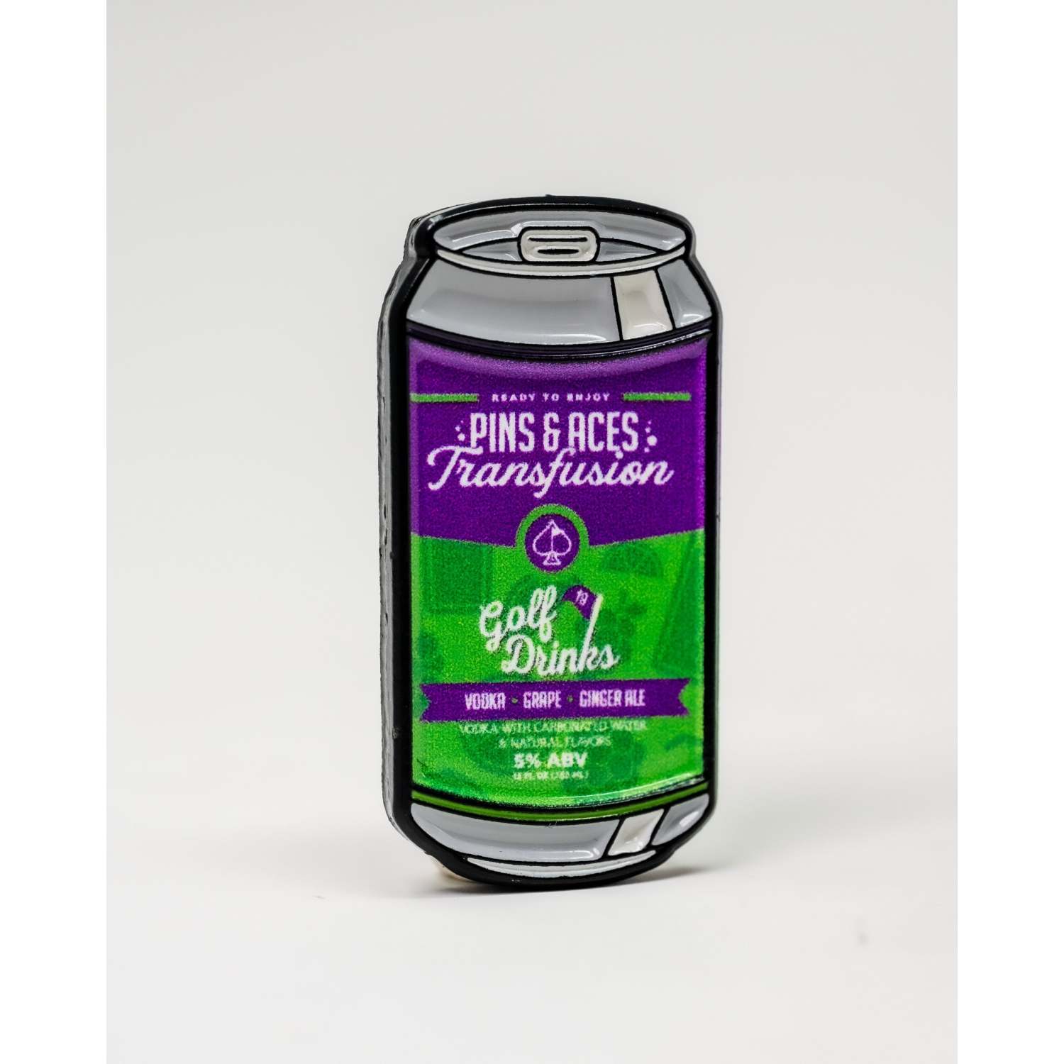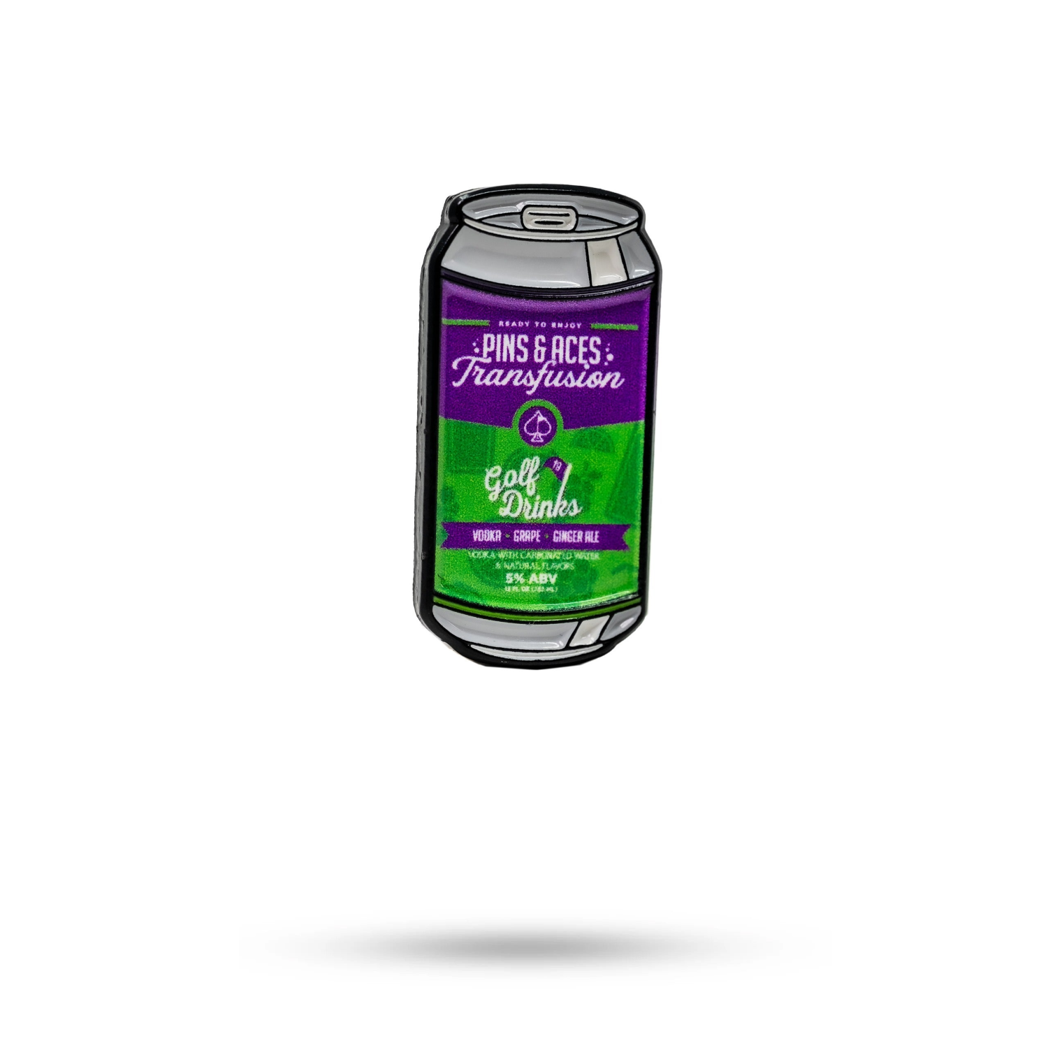Pins and Aces X Golf Drinks transfusion spade logo. We collaborated with our local friends at Golf Drinks to make an amazing tasting canned transfusion. Our collection features a polo, graphic tee, hat and two ball markers.