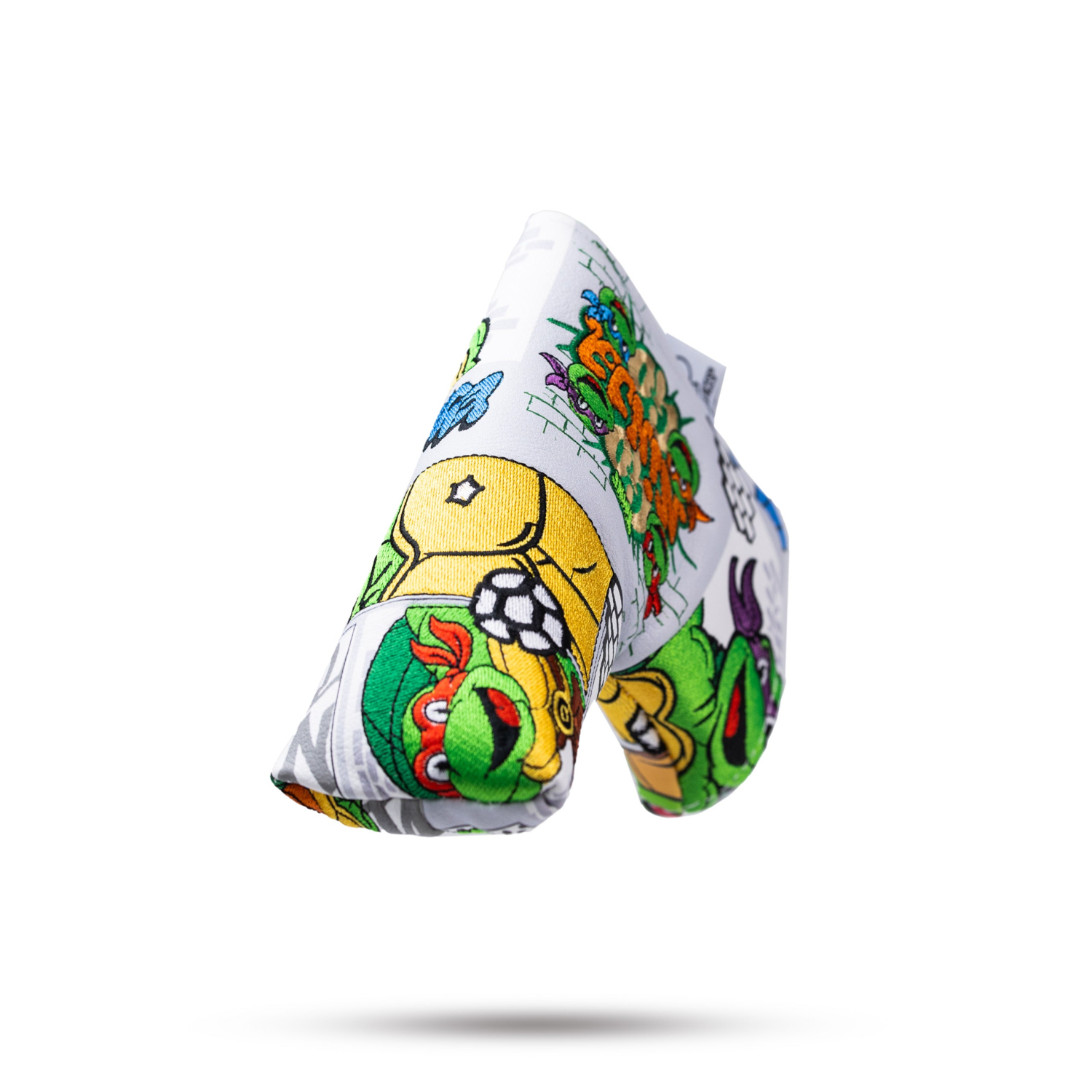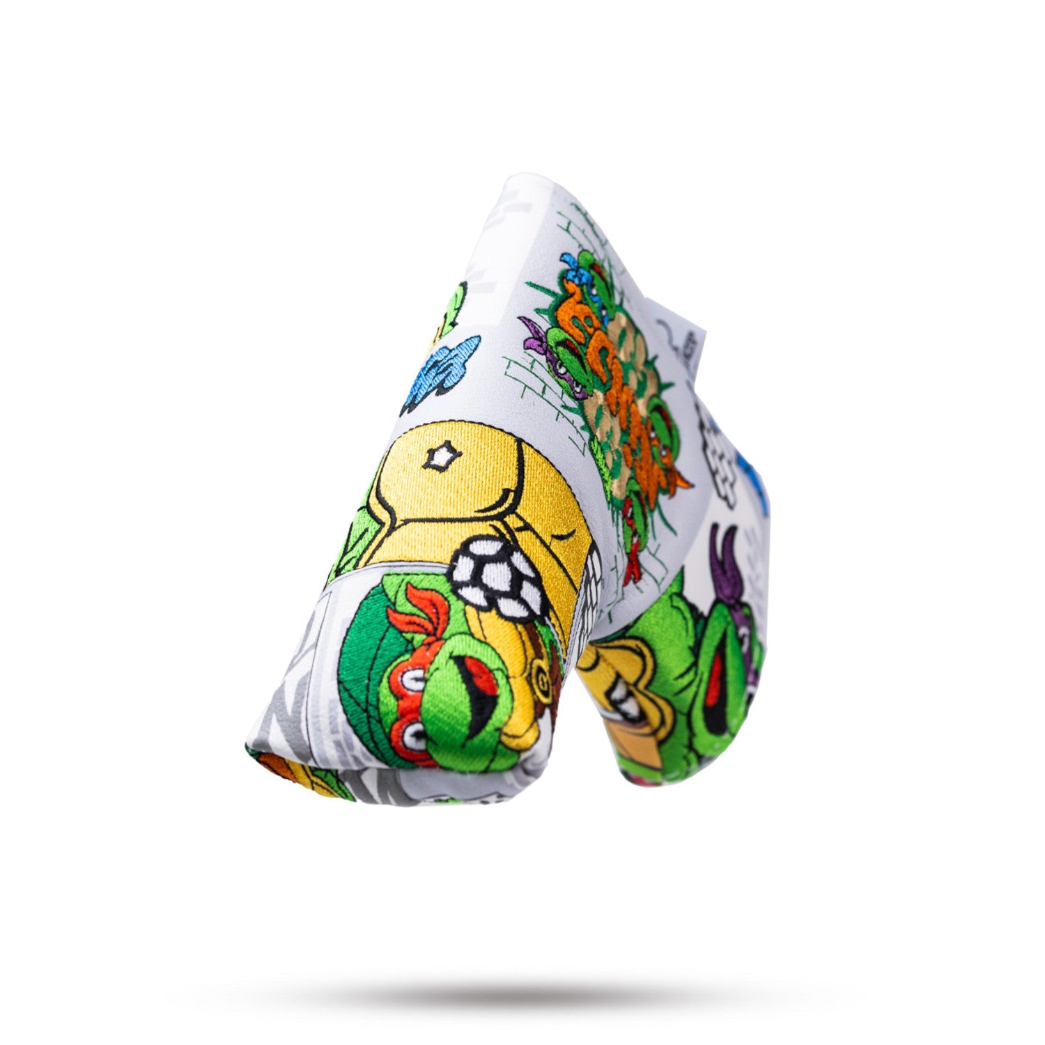 Unleash your inner hero on the golf course with the Pins & Aces x Teenage Mutant Ninja Turtles Collection 2.0 Blade Head Cover. Turn heads on the course with the classic comic strip design that pays homage to the beloved TMNT characters, bringing a playful and nostalgic vibe to your golf gear. Crafted with precision and durability, the head cover ensures your driver stays protected in style. The vibrant colors and iconic comic strip graphics make this limited-edition release a must-have for golfers who crave a unique blend of pop culture and performance. Transform your golf bag into a conversation starter and let the Teenage Mutant Ninja Turtles Collection drive your game to new heights. Cowabunga, golfers – protect your putter with flair!