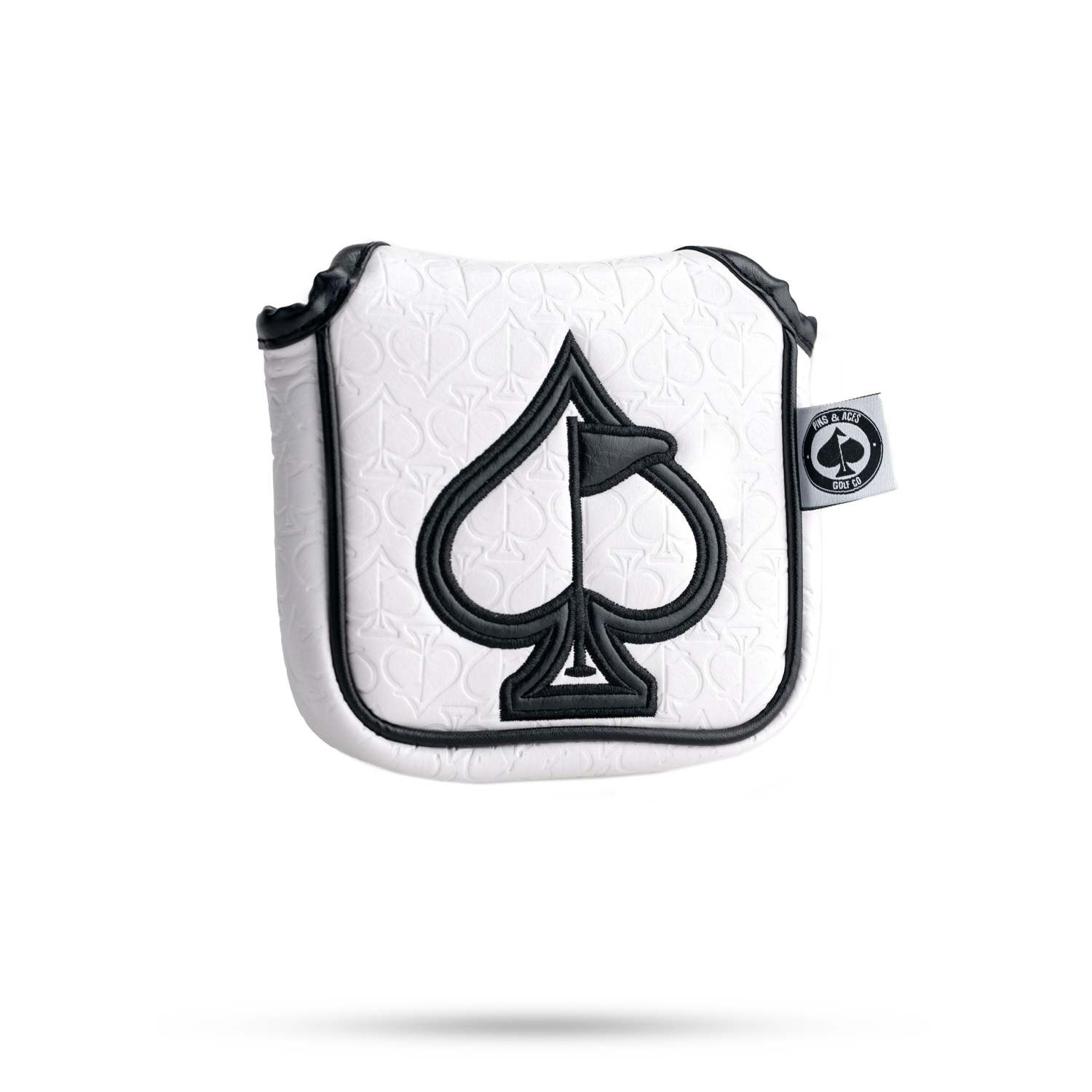 EMBOSSED SPADE MALLET PUTTER COVER - WHITE WITH BLACK SPADE