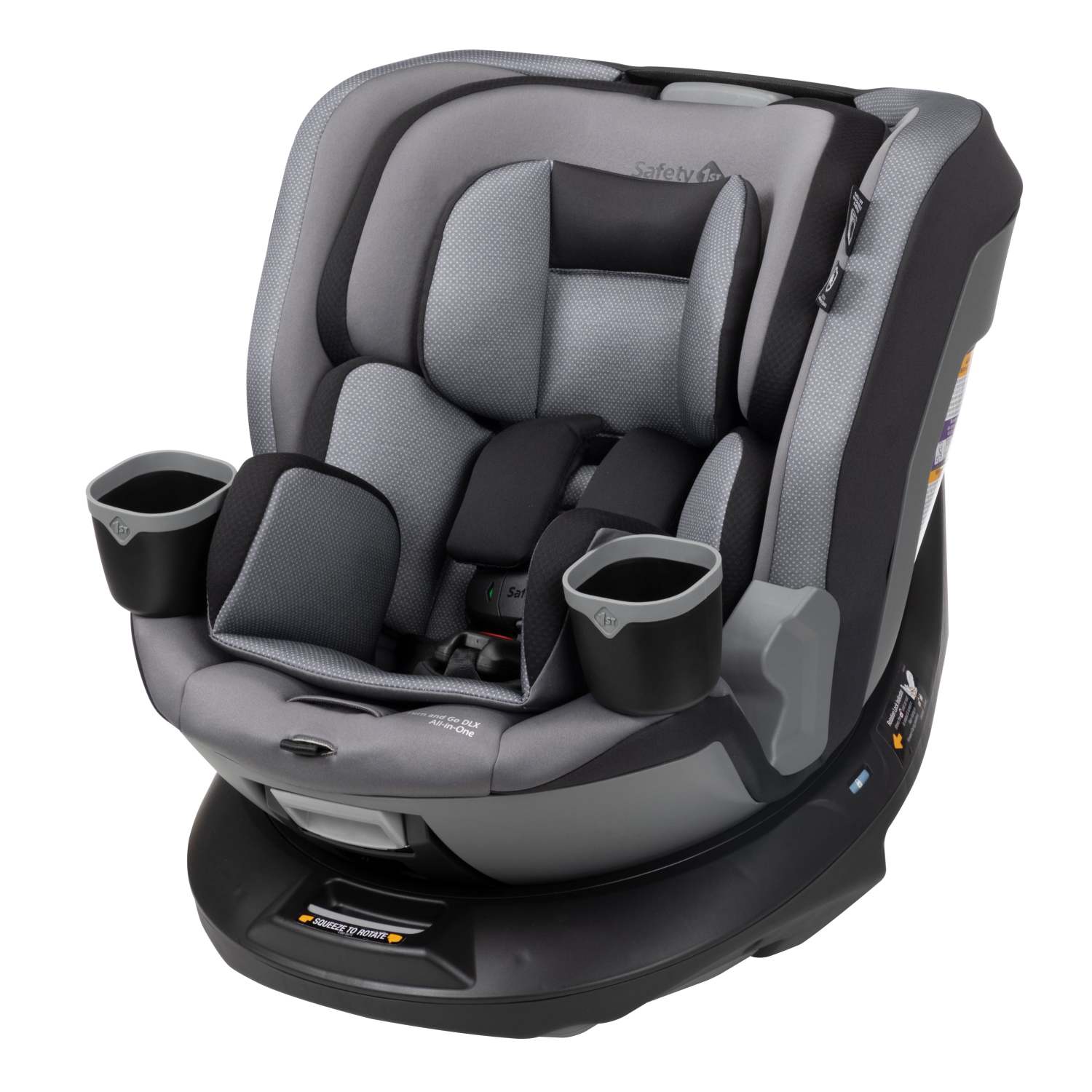 SafetySwivel 360 rotates the seat 360-degrees to turn your little one face-to-face. SecureTech - indicators turn red-to-green to see when belt has tension. 10-Position headrest and harness. 5-Position recline. SecureTech Magnetic Chest Clip. Plush infant inserts and antibacterial treated fabrics. Machine washable and dryer safe seat pad. Meets or exceeds all federal safety standards. National Highway Traffic Safety Administration compliant. Rear facing for babies 5-40lbs. Forward facing for kids 22-65lbs. Belt positioning booster for kids 40-100lbs.