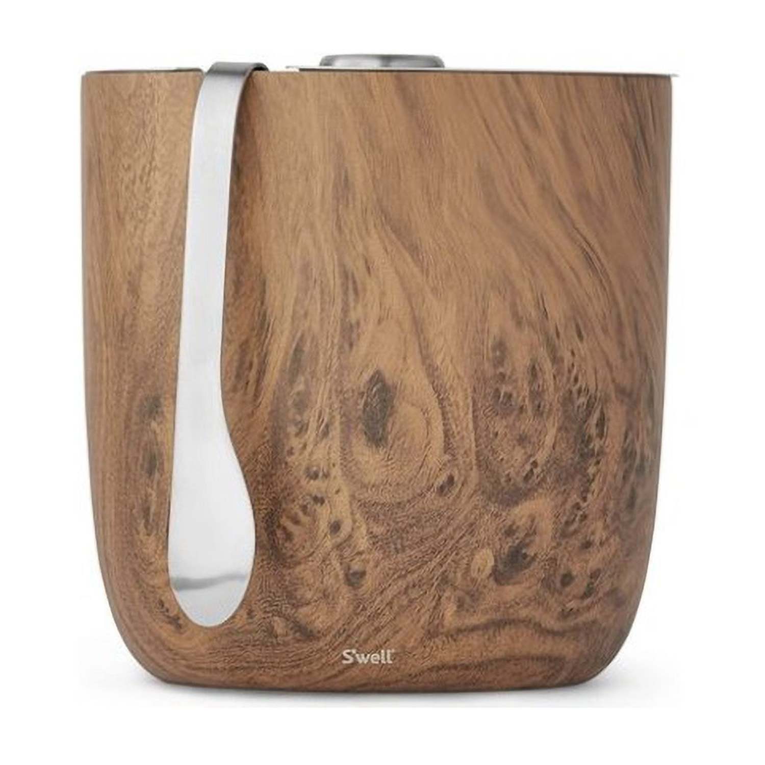 68OZ STAINLESS STEEL ICE BUCKET W/ TONGS TEAKWOOD