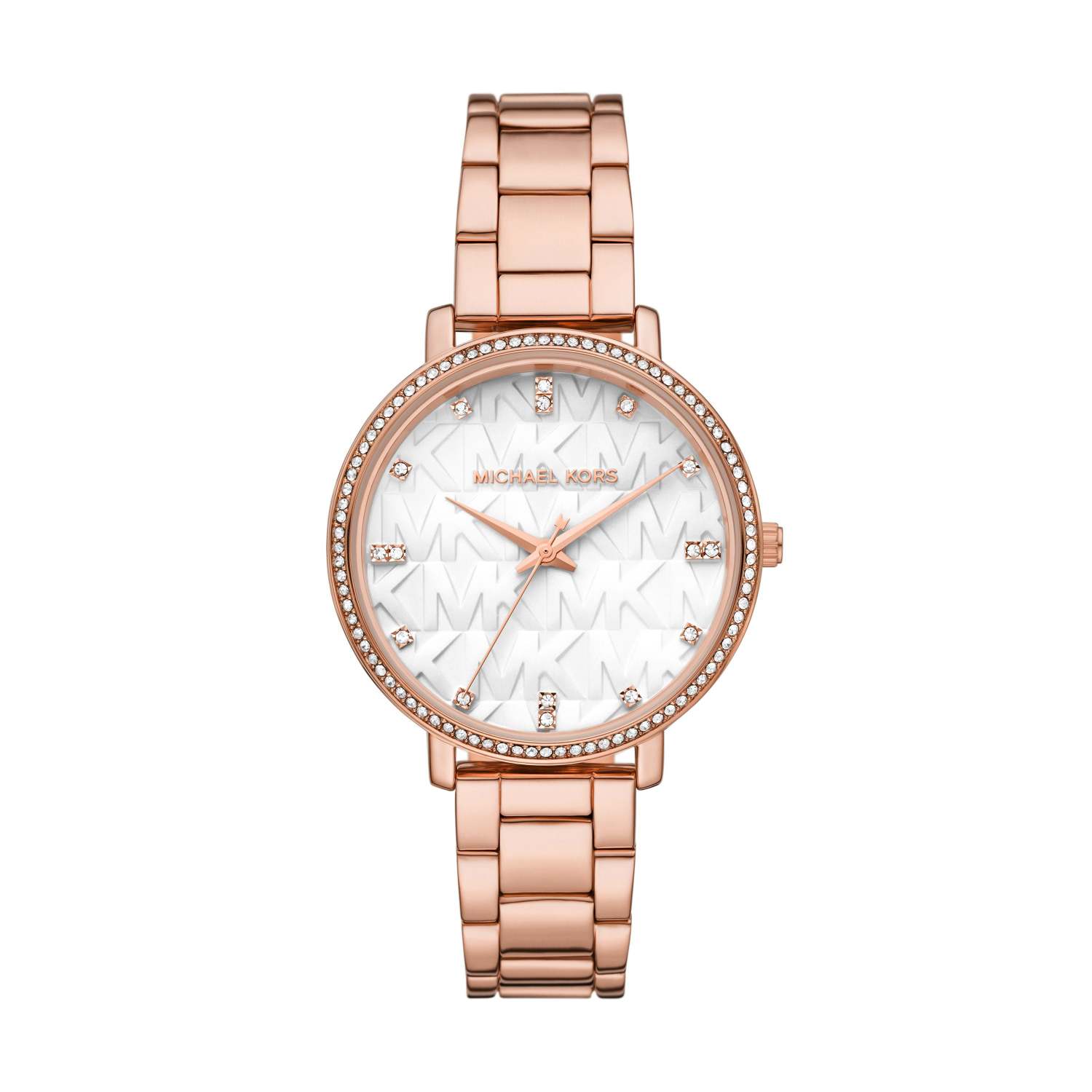 LADIES PYPER ROSE GOLD-TONE STAINLESS STEEL WATCH WHITE MK LOGO DIAL