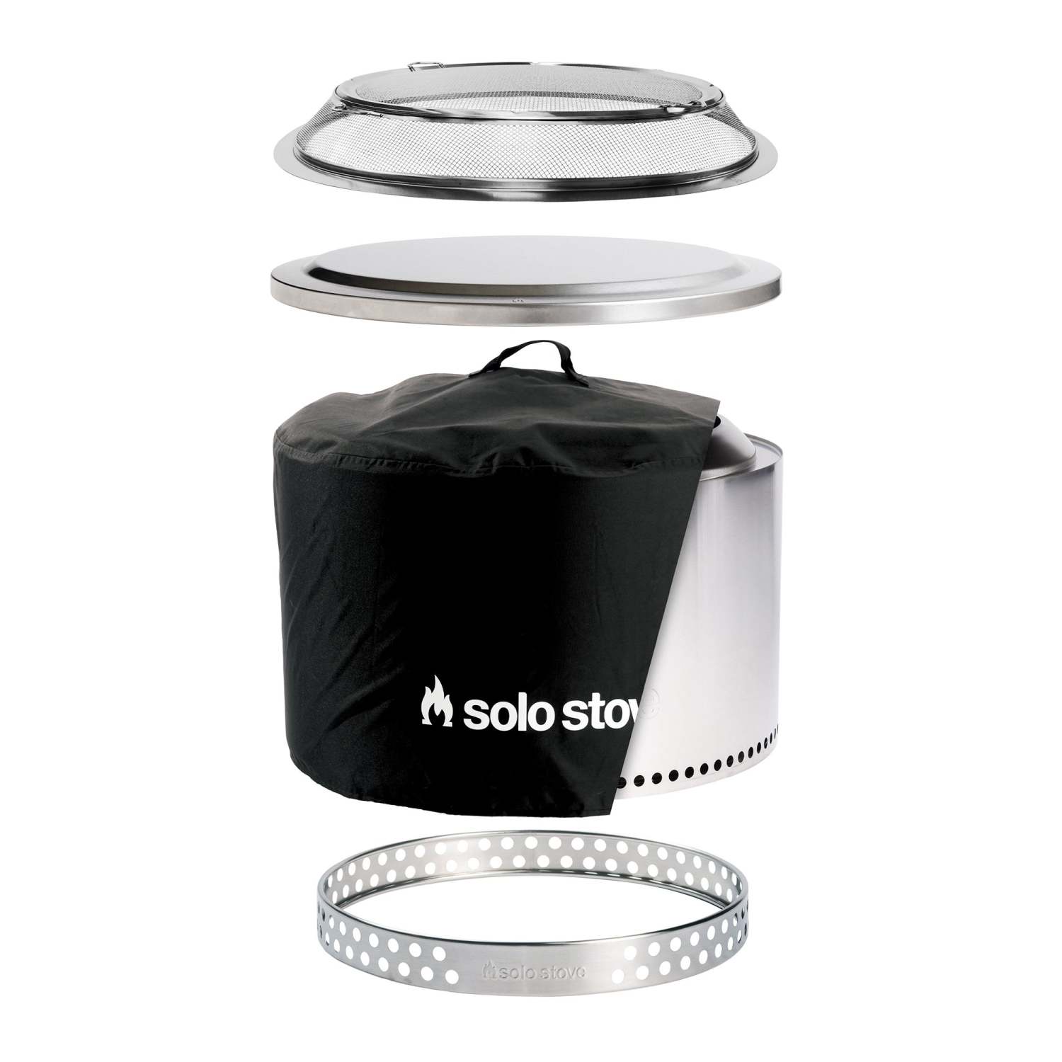 Biggest and baddest fire pit from Solo Stove. Smokeless - Signature 360-degree Airflow super-heats air to burn off smoke. Easy to Use - start-up clean-up done in a snap. Ultra-portable with carry case. Highly durable 304 stainless steel. Added safety with Shield and Stand. Yukon Shelter provides weather resilient protection. Dimensions: 27" x 19.8". Ships only in the contiguous 48-states. Includes: Yukon. Removable base plate and ash pan. Yukon shield. Yukon stand. Yukon lid. Yukon Shelter cover. Carry case.