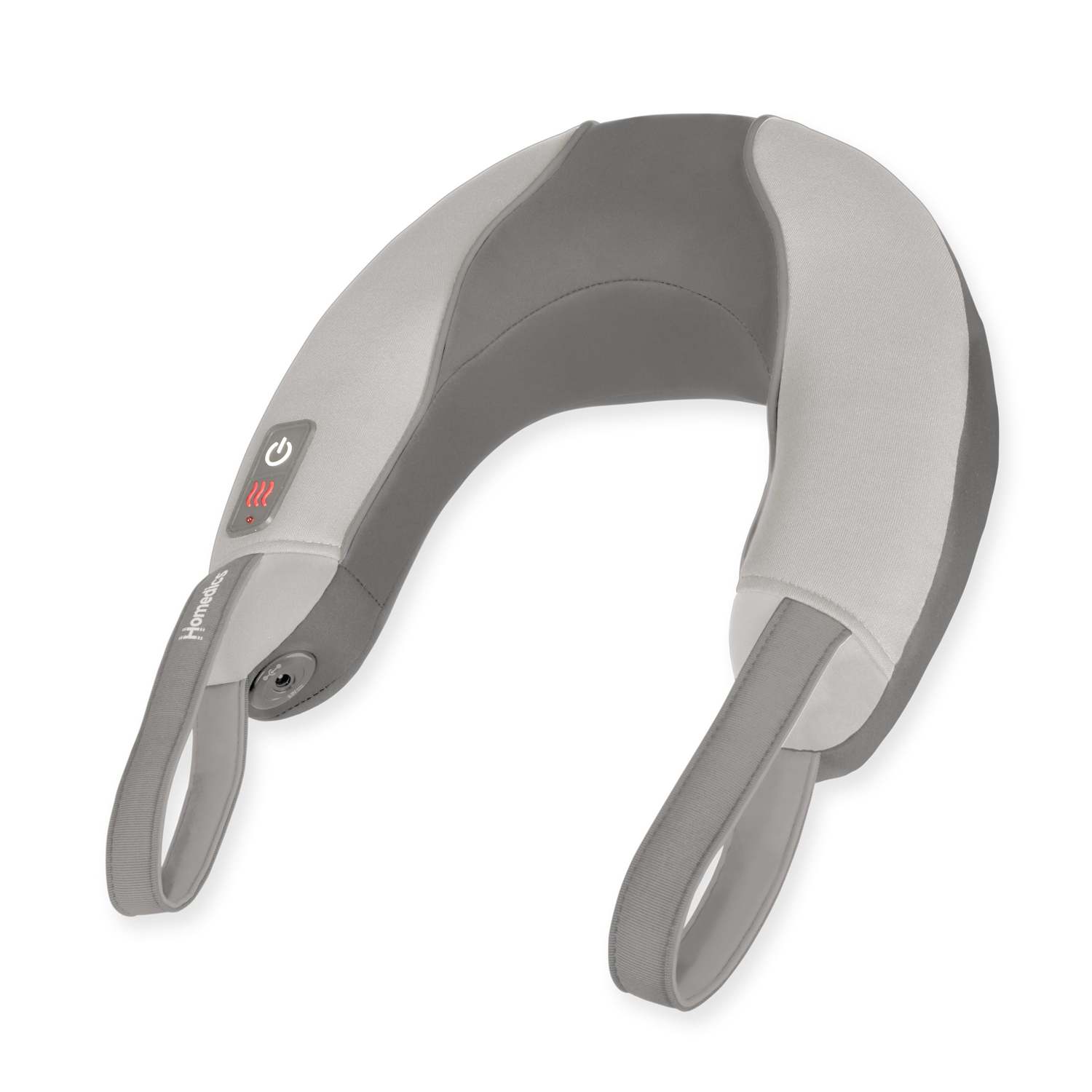 Vibration massage relieves neck pain and tension. Soothing heat delivers added comfort and muscle relaxation. Dual massage speeds (low and high). Integrated controls for ease of use. Intensity-controlling flex handles. 2 Easy-to-reach control buttons. Powered by adapter or 4 AA batteries (batteries NOT included).