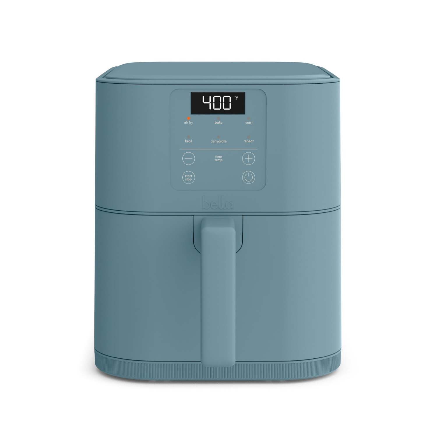 Fits-anywhere kitchenware: Saves up to 50% more space. Innovative XL basket is designed to hold up to 5lbs of food. EverGood Ceramic Nonstick Coating is made without PFAS PFOA PTFE lead and cadmium. Intuitive digital controls and 6 presets" air fry bake roast broil reheat dehydrate" for quick and tasty meals. With 1750 watts of power and circular heat technology. No more tangled mess"cord neatly tucks away. Cool-touch handles and durable construction. Touchscreen controls. Dimensions: 10.9"H x 9.09"W x 15.31"D.