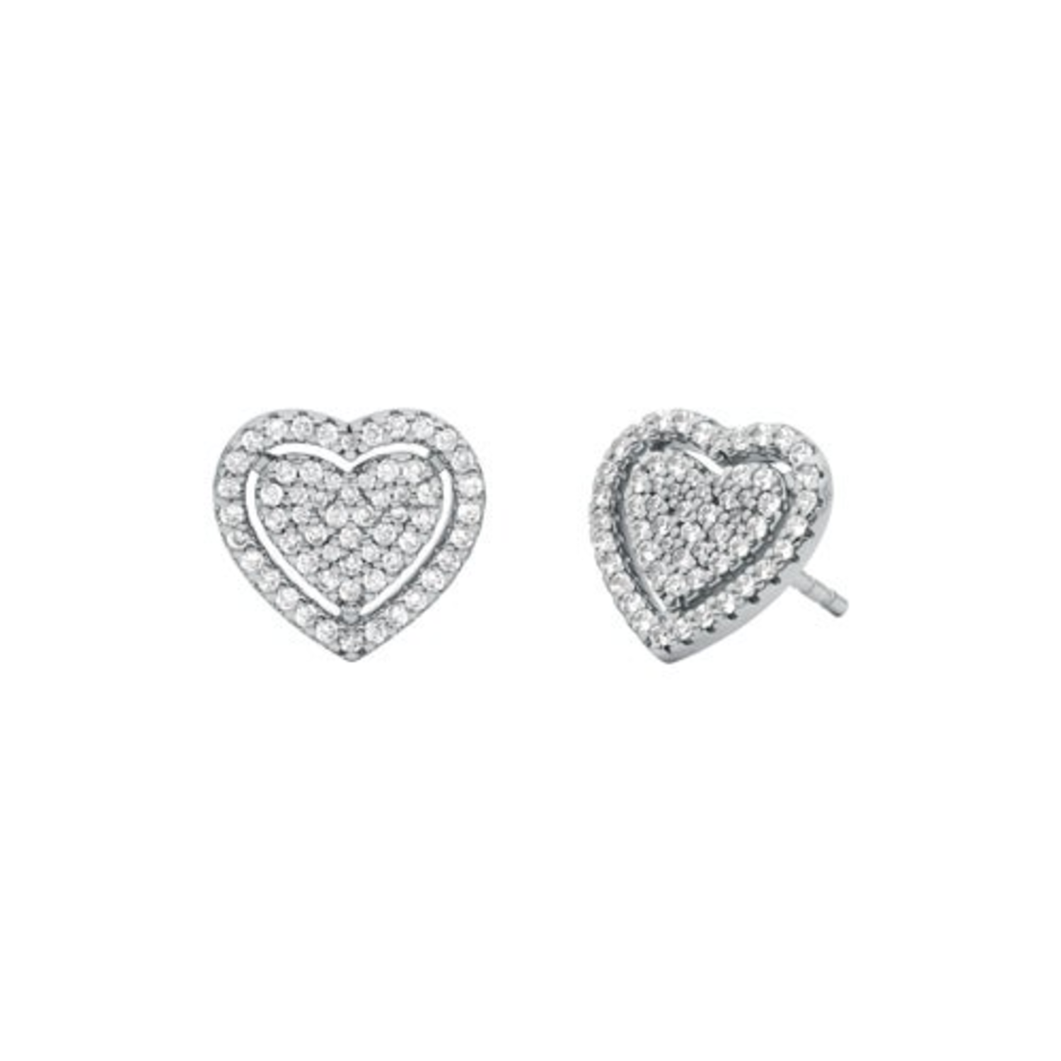 PREMIUM STERLING SILVER PAVE HEART STUD EARRINGS SILVER