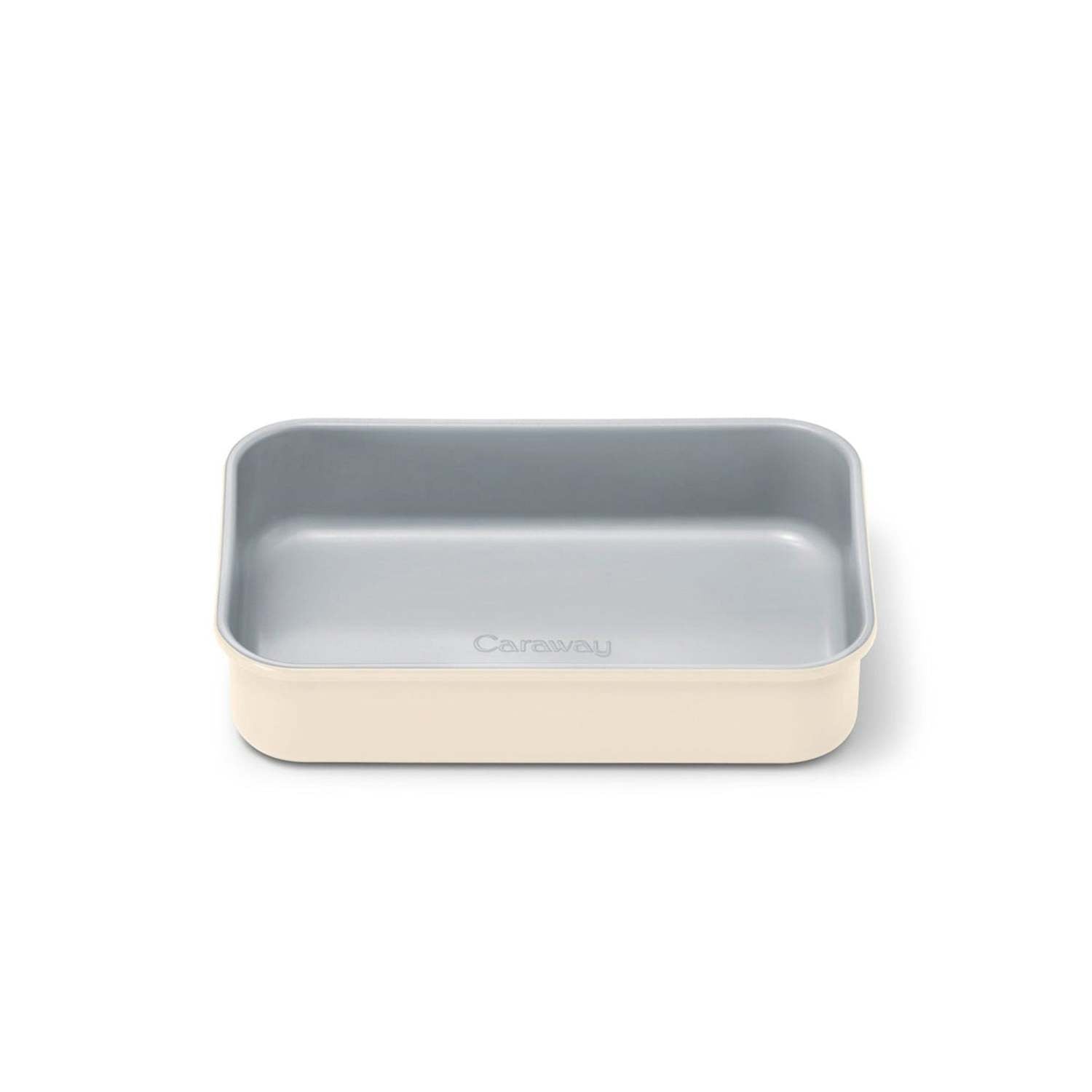 The Small Rectangle Pan is compact size and oven to table ready. Sleek oven-safe design makes serving effortless and aesthetic. Free from PFAS PFOA PTFE lead cadmium and forever chemicals. Ultra-slick ceramic ensures easy food release and stress-free cleanup. Ideal for small spaces and single portions. Aluminized steel core delivers rapid even heating and oven safety up to 550F. Ideal for roasting casseroles baking brownies and more. Yields up to 2-3 servings. Dimensions: 9"L x 6.5"W x 2"H. Recommend hand wash.