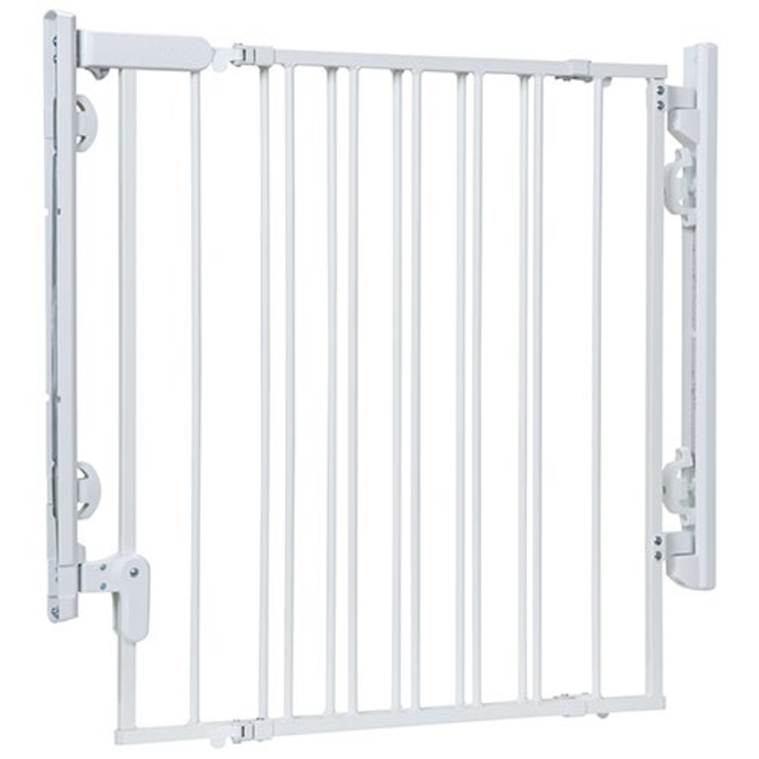 Keep your toddler safe as they start crawling and walking. This easy to install gate helps you make child friendly areas in your home. Hardware mounted gate provides extra security in risky areas of the home. Screwdriver friendly design that can be screwed directly into the drywall no anchors needed. Gate can be opened with one hand; no need to climb over the gate to get to the other room. Two-action handle makes it tough for little fingers to release the gate. 29" - 42" Wide 30" High. Requires flat mounting surface at least 3.5" wide.