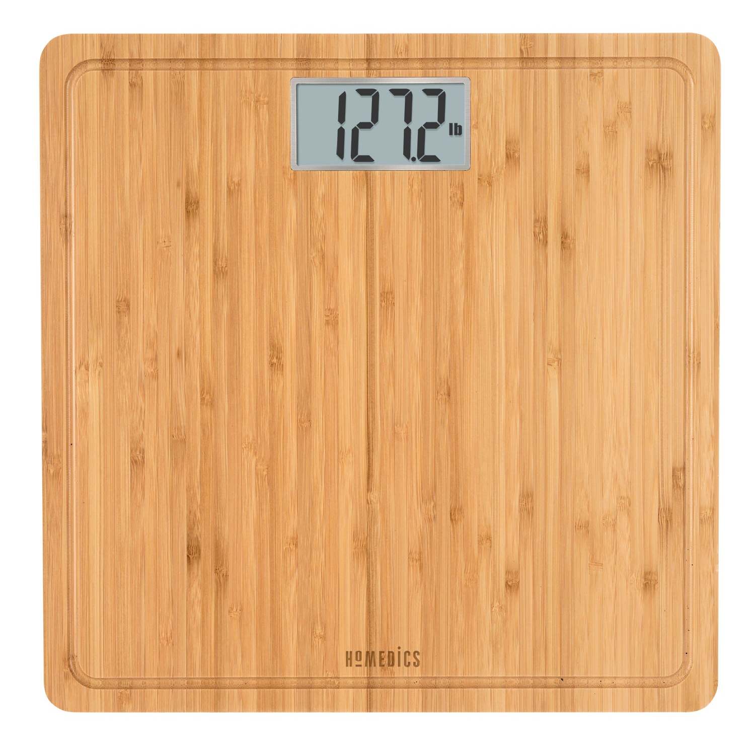 Natural bamboo scale to help you maintain your weight. The spa-like scale fits into any bathroom bedroom or workout room. Large bamboo platform has plenty of room to stand. Instant on and auto zero feature. Overload and low battery indicators. Accurate up to 400lbs weights in 0.2lb increments. Large LCD digital display is easy to read. Uses 1 CR2032 button cell battery (included). 5-Year limited manufacturer.