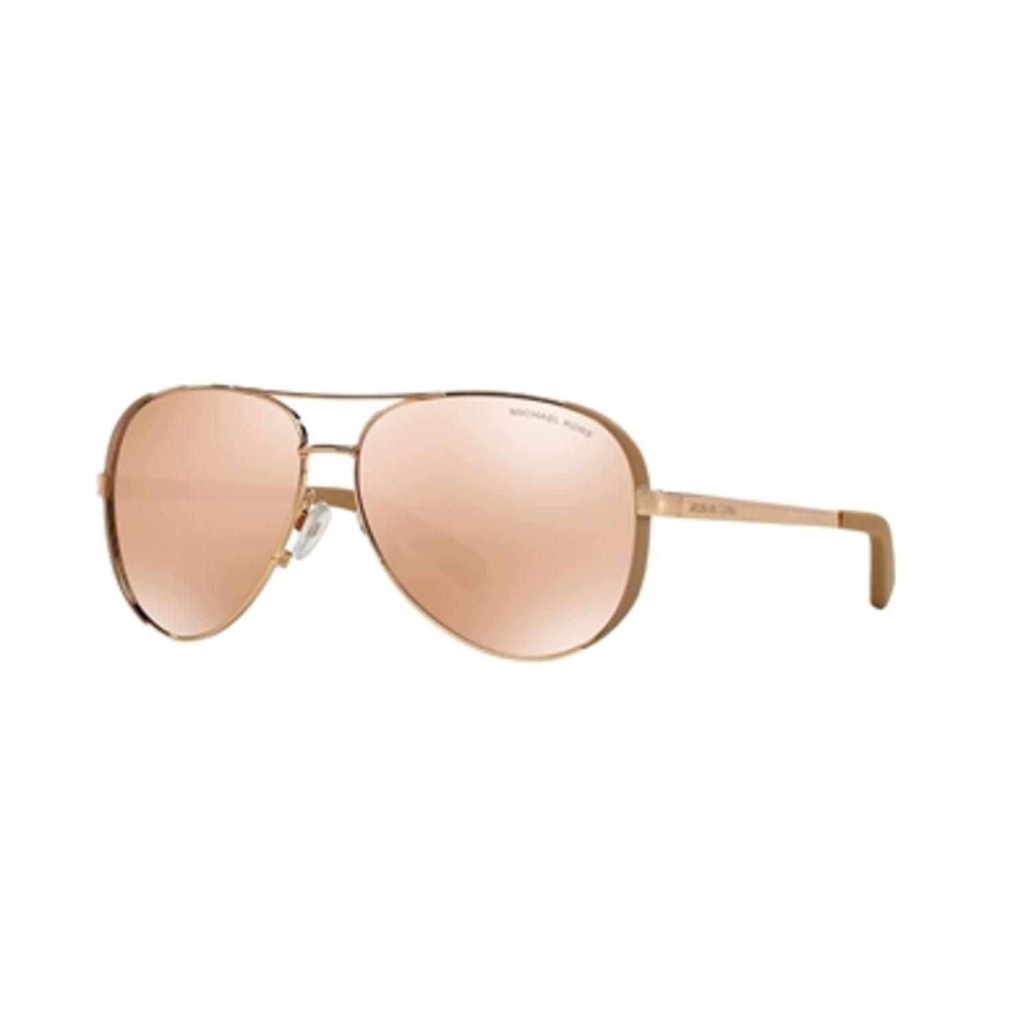 Michael Kors Chelsea Sunglasses MK-5004. Sporty in their aviator shape yet feminine in their pretty-hued lenses, these Chelsea sunglasses offer both protection for your eyes and the kind of cool factor that complements any outfit. Rose gold plastic lens, pilot, metal frame, 100% UV Protection.