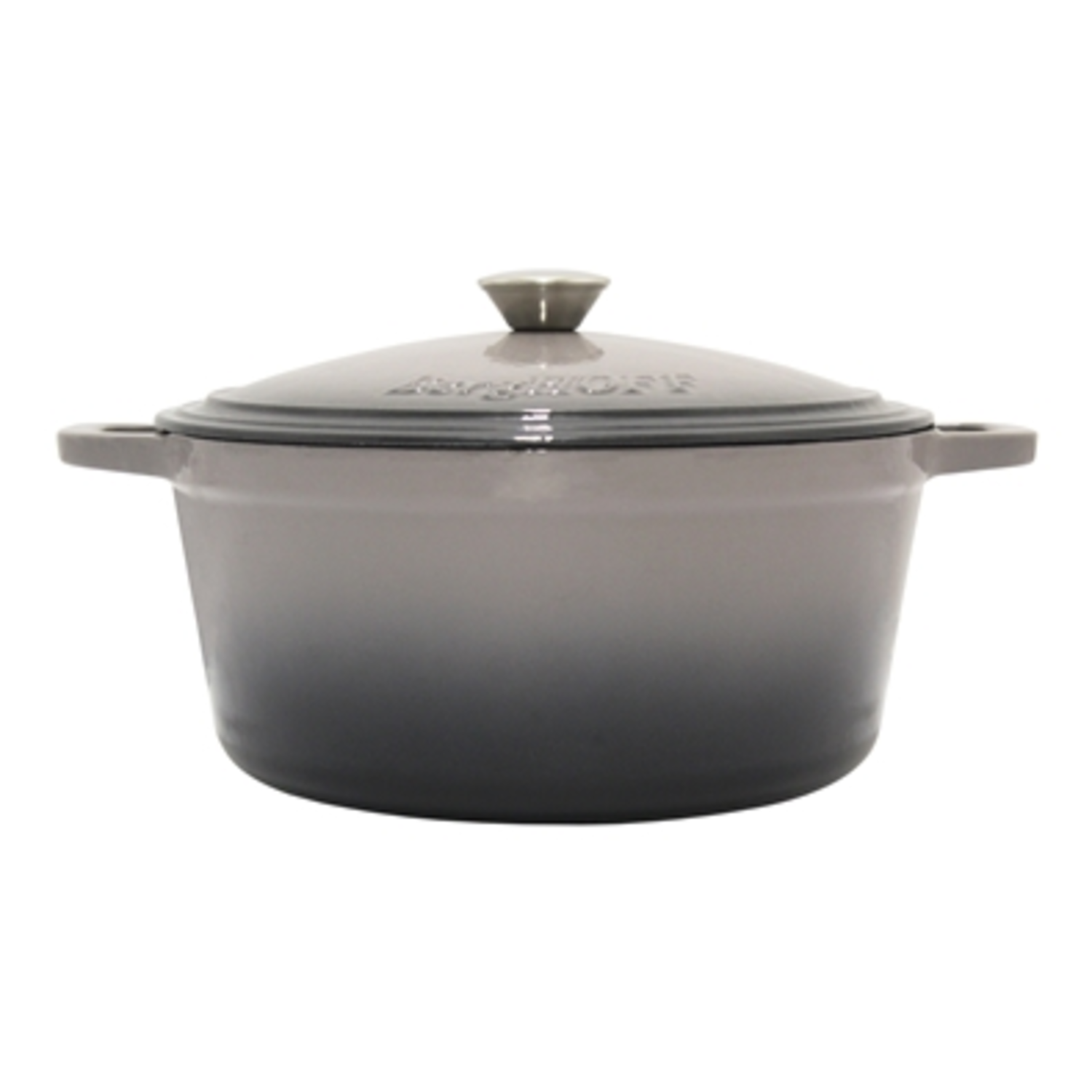 BergHOFF's Neo Enameled Cast Iron Cookware line contains the work horses of the kitchen. Designed with beauty, functionality, and durability in mind, BergHOFF's Cast Iron cookware is second to none. With sleek lines and endless curves, our 7qt round Dutch oven combines European craftsmanship, practicality for everyday use, and dependability to create delicious meals for years to come. Solid cast iron cookware with a beautiful, enameled coating. This essential kitchen tool provides even heating, retains heat longer, and distributes heat evenly throughout the cooking process at all temperatures. Whether making a hearty stew, braising meats, making a light soup, or making a roast, BergHOFF's 7 Qt Neo Cast Iron Dutch Oven is a must have. Start the meal on the stovetop and finish in the oven. Includes one cast iron Dutch oven with lid. Suitable for all cooktops, including induction, gas, electric, glass and ceramic. For best results use low to medium heat on stovetop. Oven safe to 480 degrees Fahrenheit. Please allow cookware and lid to cool completely before attempting to clean. Handwash recommended with warm water and mild detergent. Avoid cleaners containing bleach or citrus extracts. Avoid using steel wool and steel scouring pads. Includes one enameled cast iron 7 qt Dutch oven with lid.