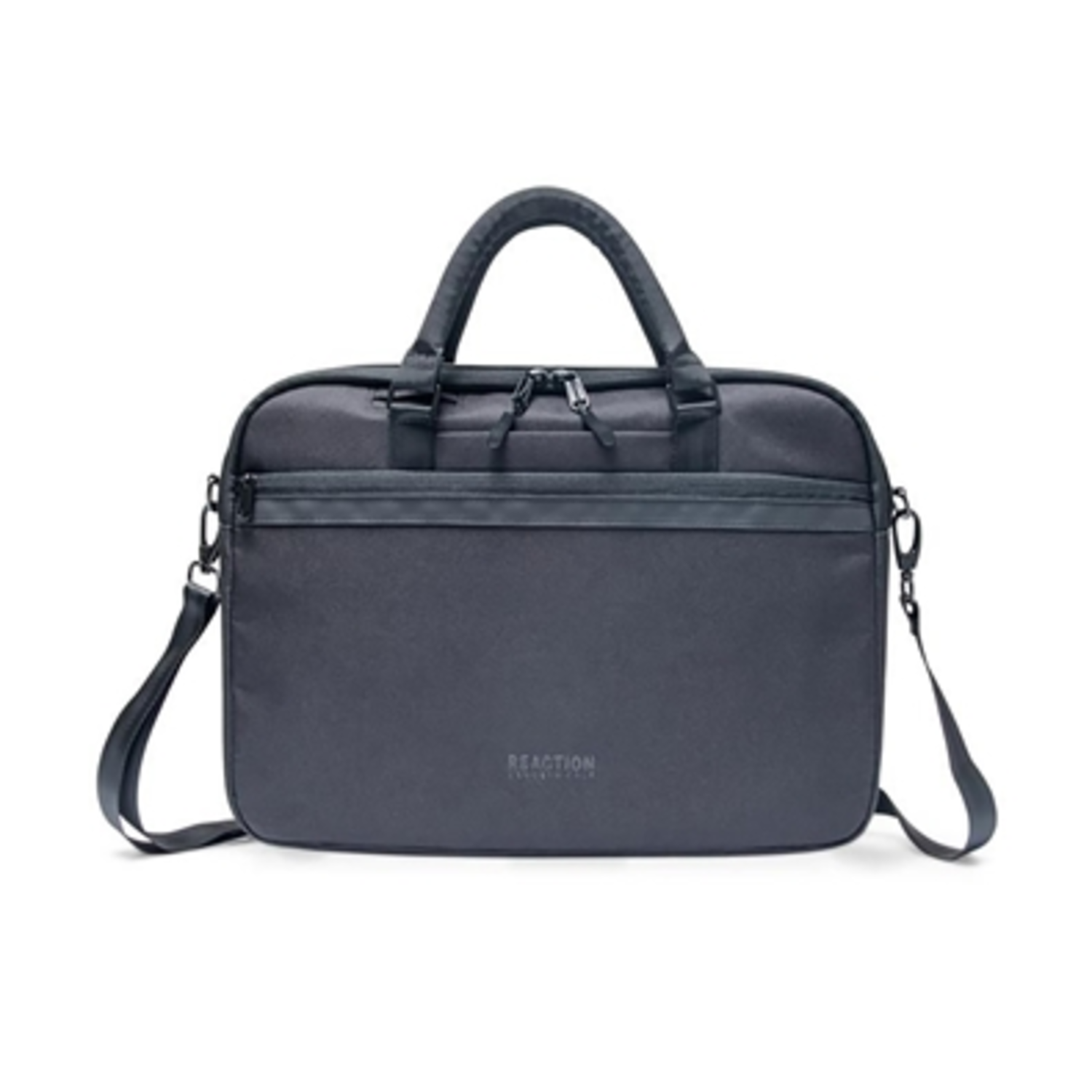 This bag fits most laptops up to 16 inches and is compatible with most tablets. Made from recycled polyester with a tear-resistant interior, it features a full-length zipper pocket and an open top slash pocket on the front. The front compartment has mesh pockets, an accessory pocket, and pen loops, while the rear compartment is padded for a laptop. The rear exterior has a trolley strap for easy transport on most upright handles. It includes a removable, adjustable shoulder strap (up to 52 inches), cable pass-through, and top handles. The bag has self-repairing zippers and measures 15.5” L x 11.5” H x 3” D, with a laptop pocket size of 14.5” L x 11” H x 1” D. Weighing 1.45 lbs, it comes with a limited lifetime warranty.