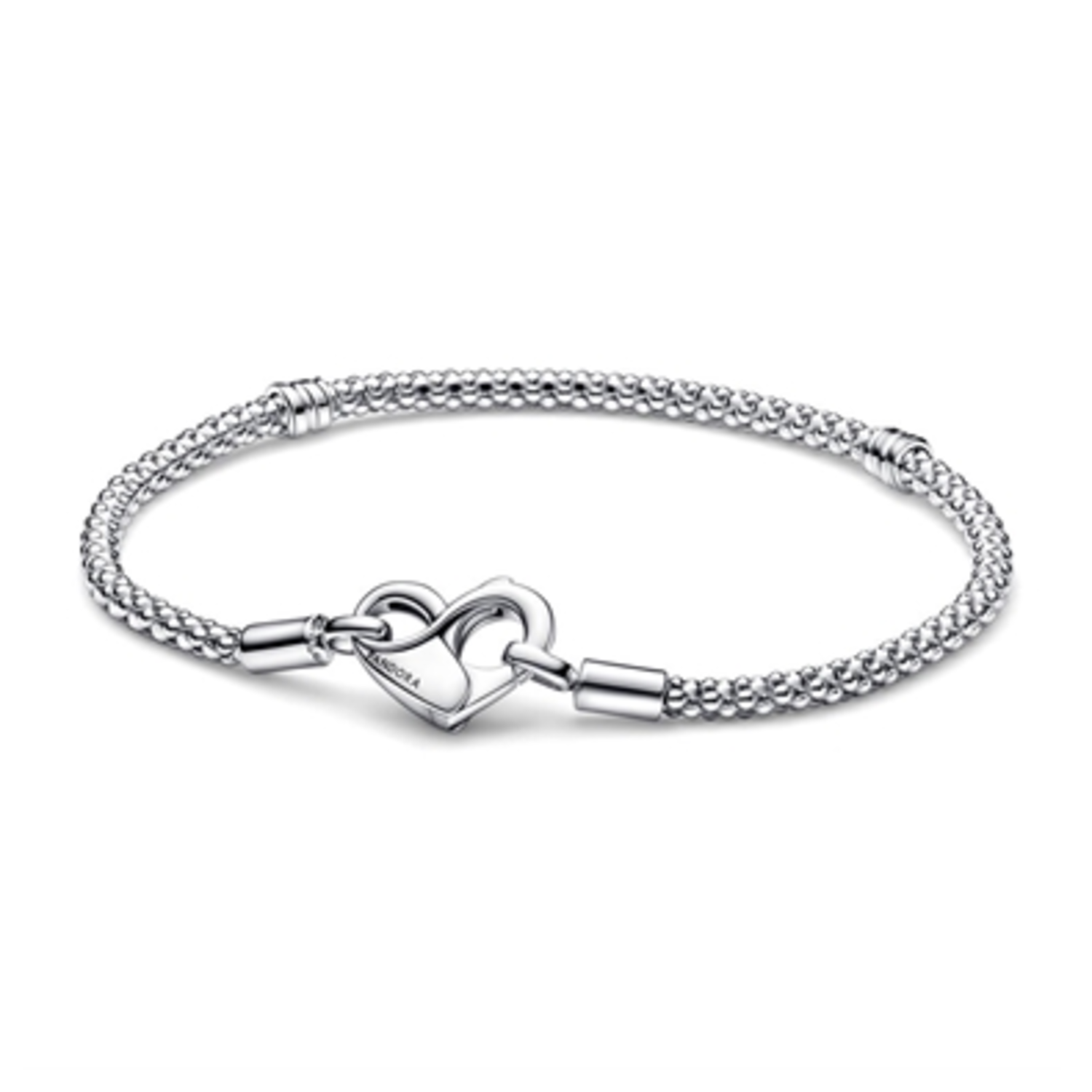 Update your collection with our new Pandora Moments Studded Chain Bracelet. Hand-finished in sterling silver, this bracelet features a flexible, textured chain and an infinity-detailed openable heart-shaped clasp with an interior infinity symbol. Please note: a maximum of 14-18 charms, dangle charms or pendants can be styled among the three sections divided by the threaders.