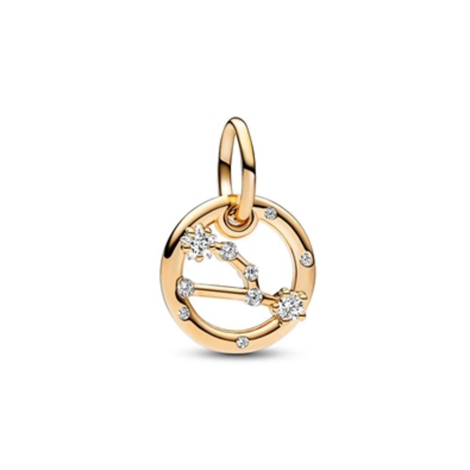 Let the stars guide your look with the Taurus Zodiac Dangle Charm. The dangle is crafted our 14k gold-plated unique metal blend, has a circular outer frame and features clear sparkling cubic zirconia as well as the shape of the Taurus zodiac sign. The back side of the frame is engraved with "Taurus." Loyal, trustworthy and strong-minded, the Taurus in your life can always be counted on to be good-natured, down-to-earth and tenacious. Wear this Pandora Moments Dangle Charm as a sign of your own sign's strength or give it as a gift of appreciation to the Taurus in your life.