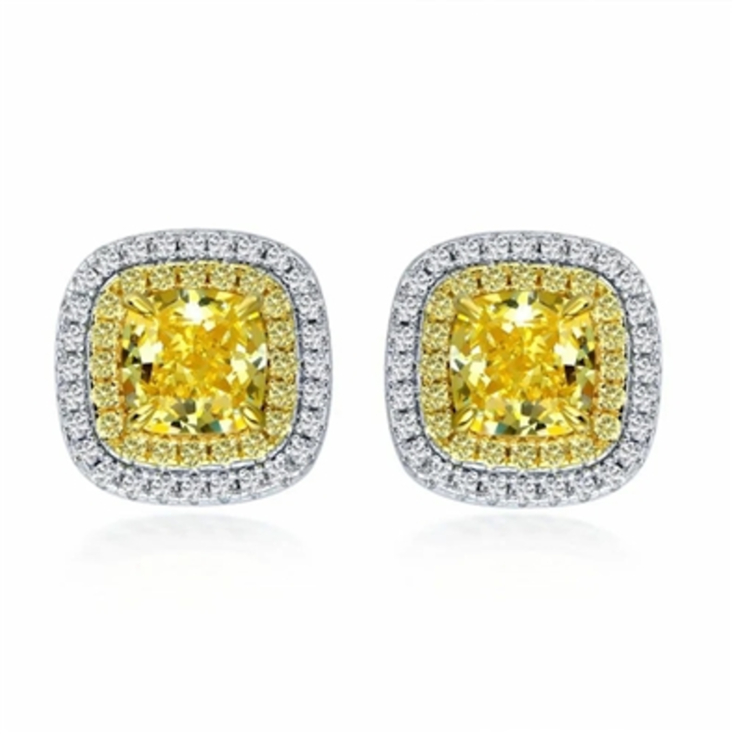 Discover the captivating beauty of our Lucia Brilliante collection. Featuring a stunning 1 carat cushion center stone surrounded by two rows of dazzling diamond crystalline, these earrings exude timeless elegance and enchanting allure. Main Stone Type: Canary Yellow Crystalline. Main Stone Weight: 1 Carat in Each Earring. Total Gem Weight: 3tcw in Both Earrings. Metal Type: Sterling Silver 925. Metal Finish: Platinum.