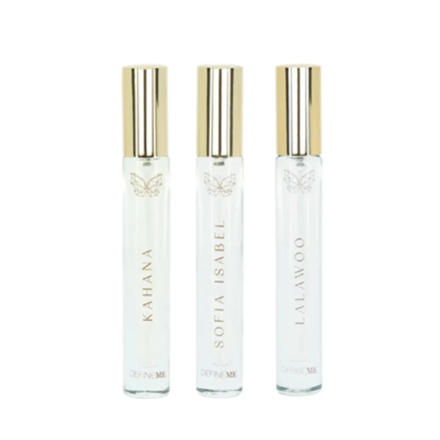 Immerse yourself in our most popular fragrances with the Trending Travel Spray Trio, featuring three best-selling scents: Kahana, Sofia Isabel, and Lalawoo. Perfectly sized for on-the-go, these travel bottles let you carry your favorite aromas wherever life takes you. Kahana is a serene escape in a bottle—an enchanting elixir that whispers relaxation and transports you to tranquil shores. This beachy blend harmonizes hibiscus, delicate pink pepper, and refreshing coconut water, while white orchid and soft santal and blonde woods cradle your senses in calm. Sofia Isabel is an intoxicating gourmand that invites you to embrace life with unbridled confidence. Zesty mandarin and tangerine dance alongside rich black currant and elegant jasmine, culminating in the warm embrace of vanilla and a touch of sugar, evoking life's sweetest moments. Lalawoo is decadent and creamy, captivating with luscious pistachio and marzipan that melt into toasted praline, almond milk, and caramel. The fragrance finishes with a velvety blend of cream liqueur and vanilla bean, leaving a sophisticated and unforgettable trail. To enjoy lasting fragrance, spritz liberally onto pulse points—wrists, neck, and behind your ears. For a personalized touch, layer Kahana, Sofia Isabel, and Lalawoo to create your own unique scent profile and express your mood with every spritz.