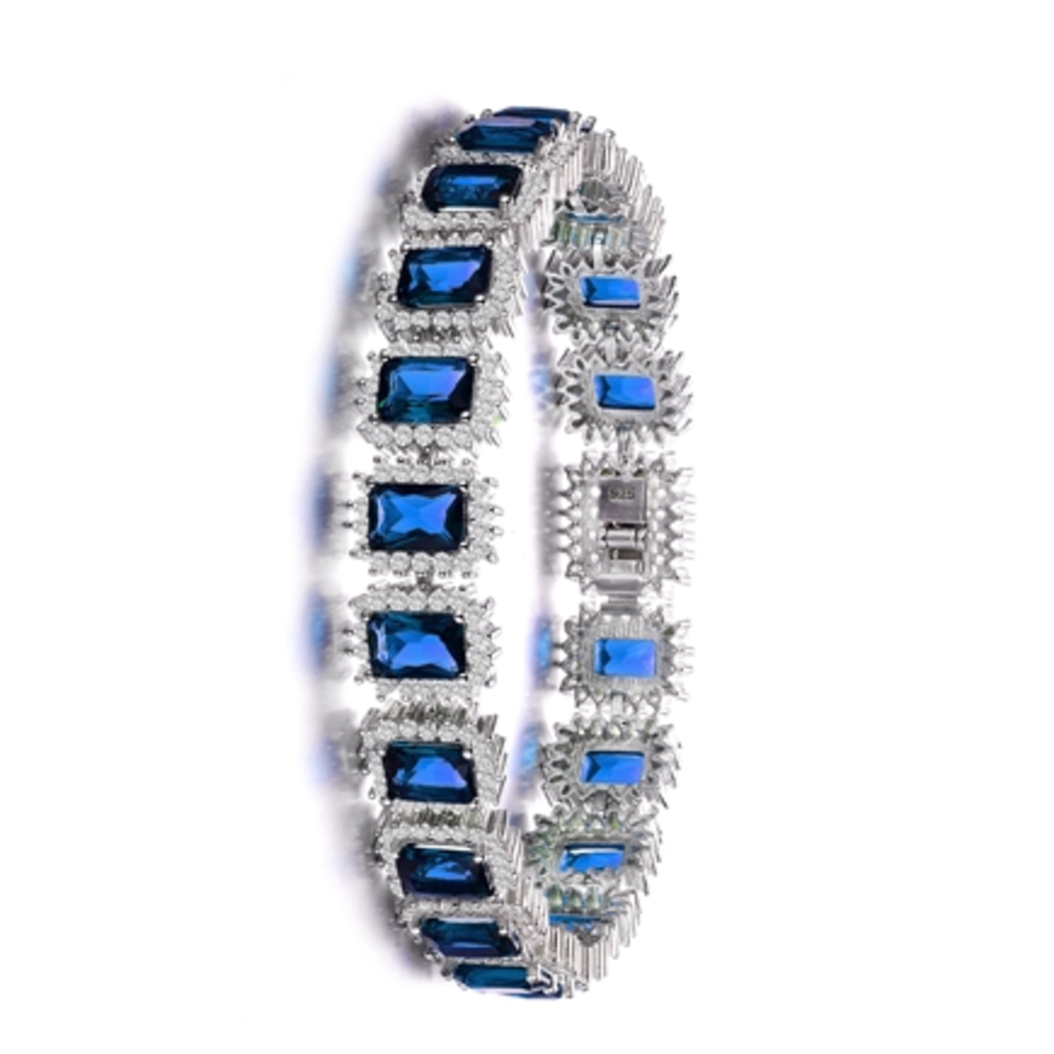 CZ RHODIUM BLUE STATEMENT NECKLACE, BLUE, 7.25''