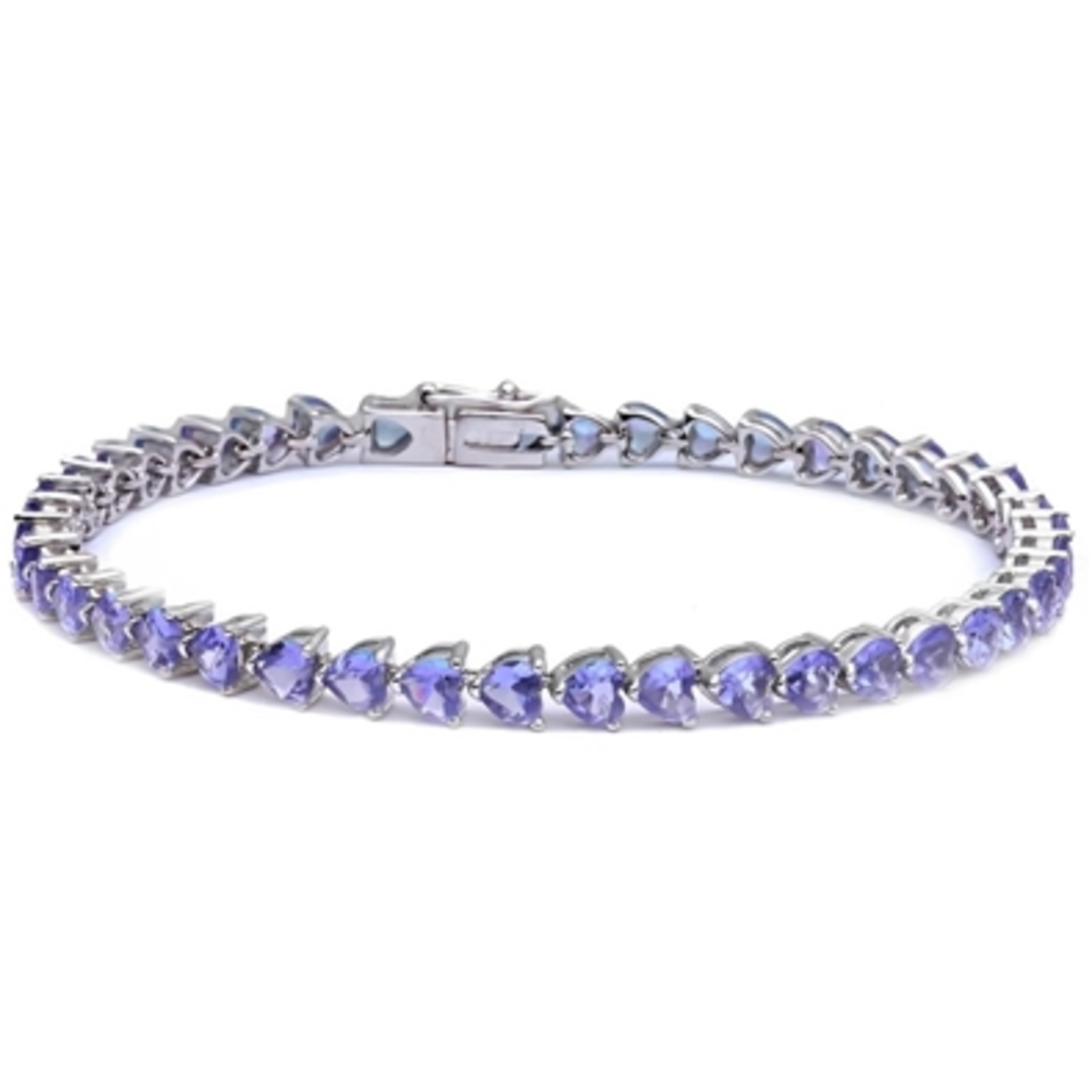 Experience the beauty and elegance of our Heart Cut Created Tanzanite Tennis Bracelet. Expertly designed with a 5MM heart cut stone, set in a secure basket and finished with a safety box closure. Made from high-quality brass, this 7.5 inch bracelet will add a touch of sophistication to any outfit. Treat yourself or a loved one to a timeless piece that will be cherished for years to come!